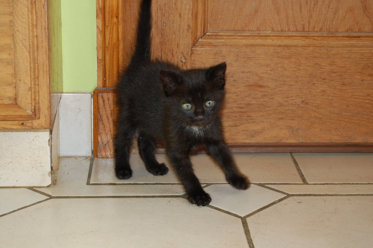 | Dire merci | Oui les noirs, sont chiant les gens avec ca, juste parce que la croyance dit que ca porte malheur M'enfin là elle est pas tout à fait noire, elle a un petit peu de blanc sous le menton. Au pire tu la vends comme tigrée... (faut juste pas préciser que ca se verra plus en grandissant ) |