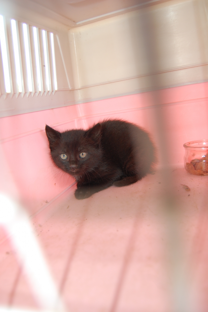 | le chaton que j'avais attrapé crachait, mais au final, n'attaquait pas. J'avais mis un gros gant de soudeur les premieres fois pour etre sure de ne pas me faire bousiller la main, et quand j'ai vu qu'il arretait de cracher des que je le touchais, j'y suis allée à mains nues. pour l'empecher de se sauver, je le caressais d'abord dans la caisse. |