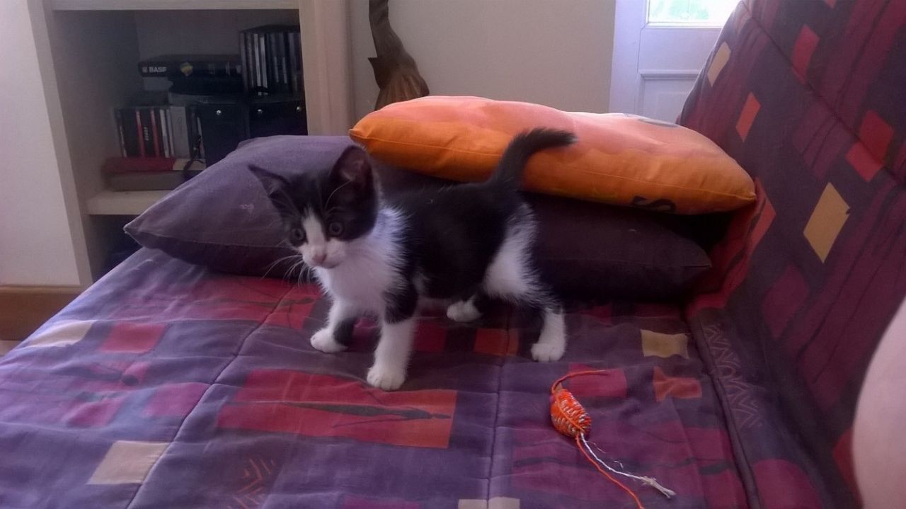 | Dire merci | Un chaton dès que ça pige qu'il a trouvé la bonne maison, c'est bon, il est chez lui Notre dernier, le soir même, il s'amusait déjà partout et faisait des bêtises avec la chienne.. Après lui, il est venu en courant alors qu'on appelait un autre chat. Donc bon, il était pas très sauvage comme bestiole, de base |