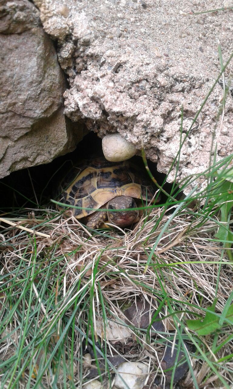 ) et la tortue n'a pas peur d'elle, par contre quand moi je m'approche pour lui donner à manger elle se cache dans sa carapace... allez comprendre