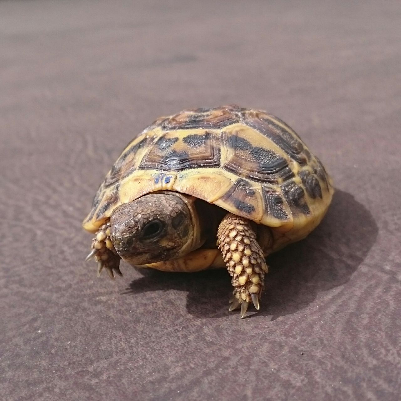 | Dire merci | J'ai une tortue des steppes. Eugénie qu'elle s'appelle. Elle vit dans un enclos où elle peut trouver ombre et soleil, avec un abri dans lequel elle ne va absolument jamais Elle est super timide et continue à se cacher dans sa carapace quand je viens la nourrir. Elle s'enterre un peu toutes les nuits, donc il faut que l'enclos soit également bien fait en profondeur. Et l'hiver on la met dans une cage, elle s'enfouit sous la paille et pionce tranquillement dans une dépendance où elle ne risque pas de mourrir gelée ni d'être bouffée par un rat où je ne sais quoi. On ne peut pas dire que ça soit embêtant comme animal. Mais pas super stimulant non plus ! |