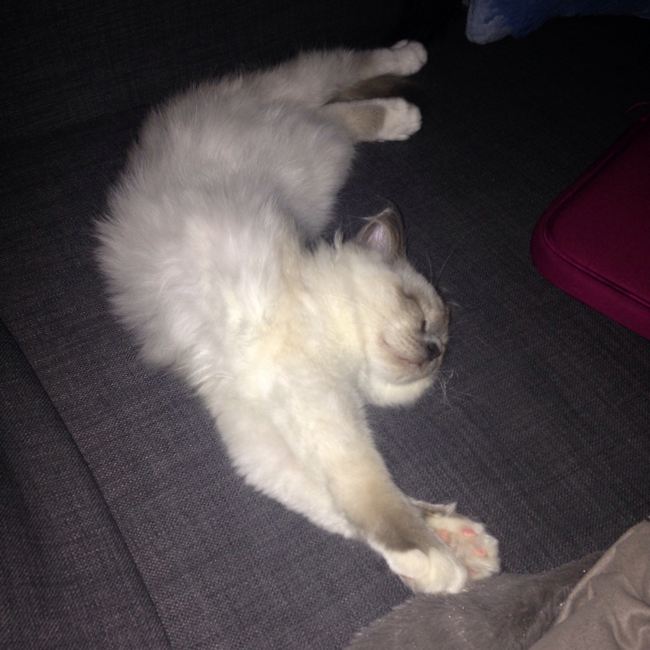 | Dire merci | Elle est marrante, elle rale tout en prenant les croquettes dans la main, du genre "je suis pas contente mais j'ai faim" La elle loge dans les toilettes, super comme coin dodo J'ai une petite photo mais pas génial comme rendu! M'enfin voici Lullaby petite sacré de Birmanie ![]() |