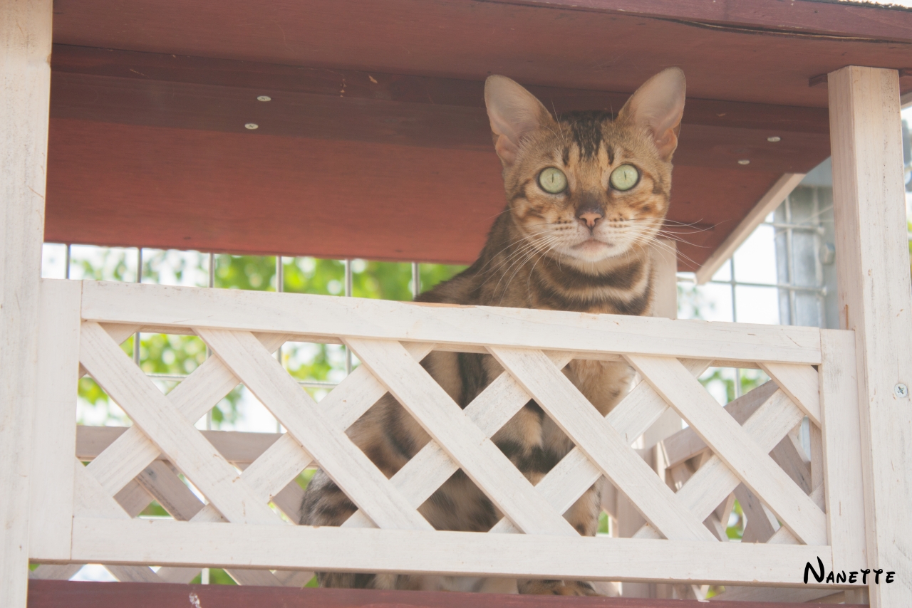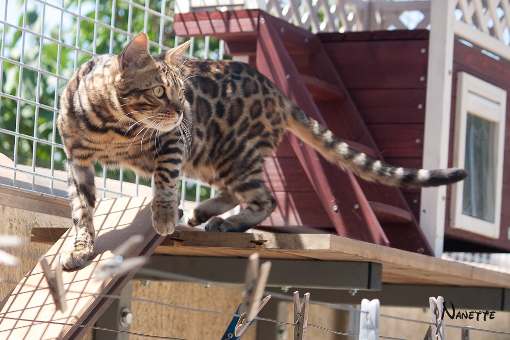 | Dire merci | Super nanette j'en veux bien encore, j'adore les yeux du bengale. Tu as l'air d'avoir de sacrée installation exterieur pour pas qu'ils filent, tu élèves ? |