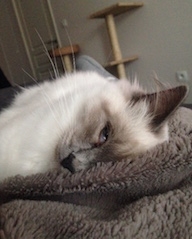 | Dire merci | Puis elle sait très bien quand elle fait une bêtise.. Mais elle s'en fout, c'est pour se faire remarquer! ça doit aussi être une spécialité birmane Monter sur les meubles interdits, faire ses griffes sur le papier peint, déchiqueter la paperasse (importante sinon c'est pas drôle), gratter l'écran de l'ordi... tout est bon pour se faire remarquer. Quand je me lève pour l'engueuler il est super heureux que je m'intéresse à lui, parfois il ronronne quand je lui met une claque Il a aussi décidé que je devais le coucher, donc tant que je suis en haut sur l'ordi il ne veut pas aller dormir dans le salon et il vient me chercher jusqu'à ce que je l'accompagne en bas et lui donne son médoc (insuffisance rénale oblige). Mon chat est dingue |