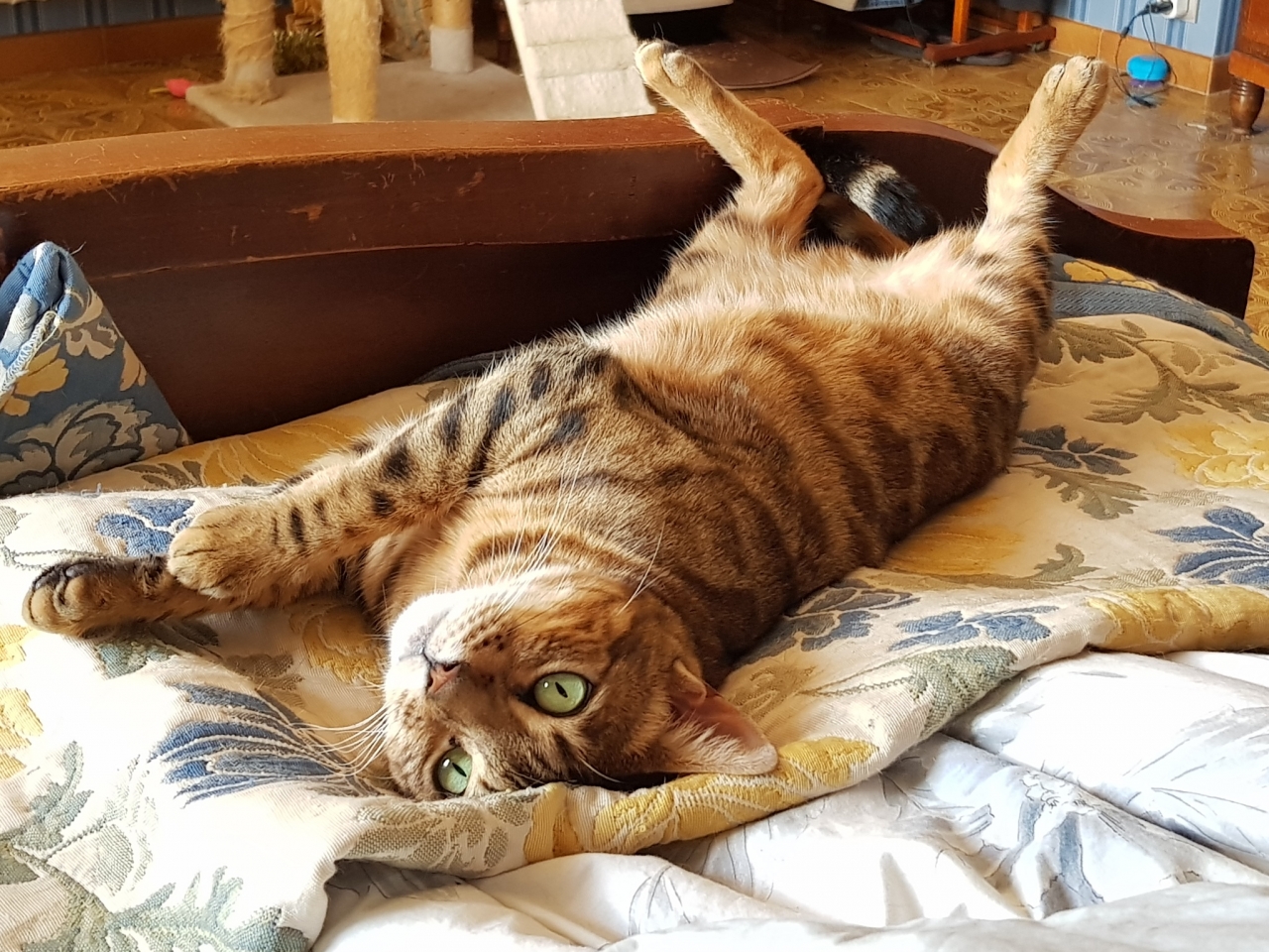 | Dire merci | Il a déjà son fauteuil favori dans le salon, il dort là à chaque fois pour l´instant j’ai l´impression. Quand on est là on peut surveiller s’il va dans le lit, c’est pour ça qu’on ferme quand on part. Bon pour l’instant il est trop petit il arrive pas monter de toute façon. |