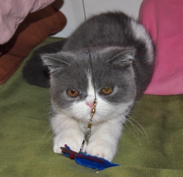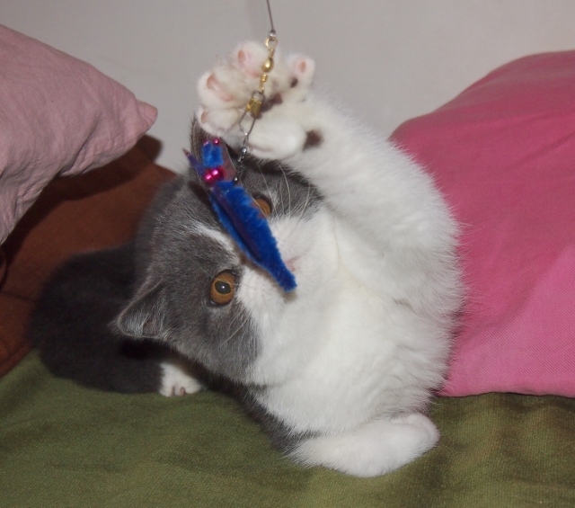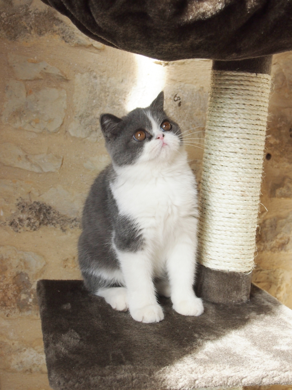 | Dire merci | Hoooo petit Matelot Pour les chiens ça ne m'étonne pas, il avait l'habitude de voir ma Boxer, mais pas d'être directement en contact, il y avait toujours un grillage pour les séparer, mais tout petit quand il l'a vu les premières fois, il était encore plus minus, et il se démontait pas quand même mais ça va vite venir, la Boxer s'est vite devenu un jeu de lui attraper les babines au travers du grillage, bientôt il va rigoler avec les canins Coccina : les chatons n'étaient pas en concours, seulement à la vente, donc pas de photos |