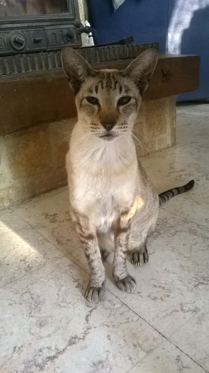 | Dire merci | Une petite question à vous, les expertes des chats de race. Mes grands parents me demandent à quelle race ressemble leur chat. Je pencherai pour un oriental, mais vous saurez peut être m'en dire un peu plus? ![]() |