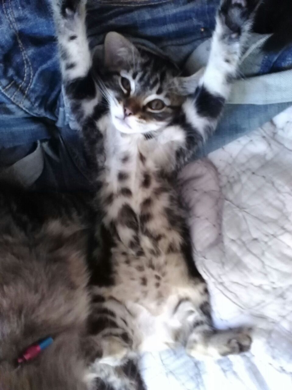 | Dire merci | alors leur pupille font des petit trait rectiligne comme les reptiles je veux voir ça plus je les regardes et plus les mini boules de poils me font penser aux peluches de chat articulé |