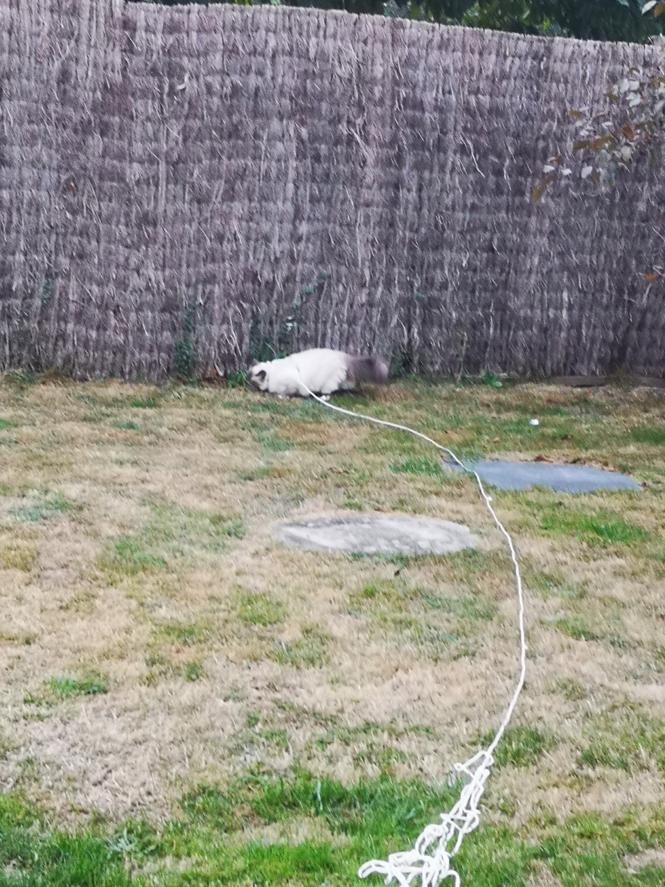 | Dire merci | On a trouvé un truc qui fonctionne à peu près pour Lulu quand elle est dehors. Vu qu'elle fait que des bêtises dans le jardin et qu'on passe notre temps à avoir des coups de flippe et à la chercher partout si on l'a regarde plus pendant 5 min.... Au piquet mademoiselle... ![]() ![]() ![]() Bien entendu on surveille toujours, au cas où mais elle a l'air de pas être gênée.. Au contraire, elle sautille malgré la corde. On dirait vraiment une chèvre |