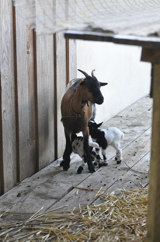 | Dire merci | Alors voilà, presque un mois après mes questions, Again a mis bas de 2 petits chevreaux, un mâle et une femelle. (il y en avait 3, mais un mort né) Tout le monde va bien, ils sont trop adorables ![]() Tous les deux noirs et blancs, mais la petite femelle a les yeux bleus, vous savez si ça reste ou si ça fonce après? ![]() |