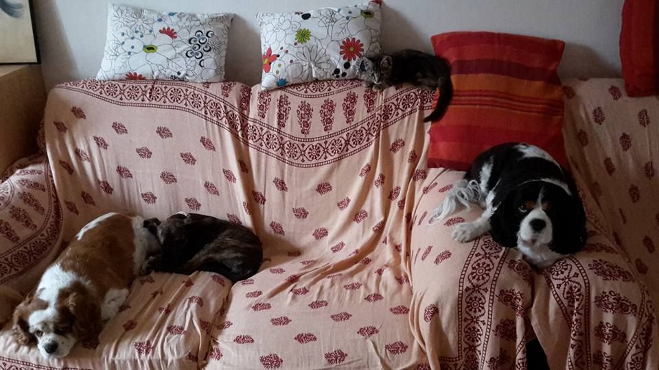 | Dire merci | Oui moi aussi j'ai hâte de la voir remplumé et surtout avec les yeux moins triste !!! Elle à passé une super nuit, elle m'a juste réveillé à 3h30 pour aller faire pipi, sinon rien d'autre !!! elle est moins stresser ce matin, et en plus j'ai récupérer les 2 autres chiennes pour 4 jours, autant vous dire qu'elle est heureuse la pepette !!! Elle me lâche pas, bien trop peur que je la laisse ou l'abandonne !! Et voilà ma troupe au complet, prise à l'instant ![]() " alt="" /> |