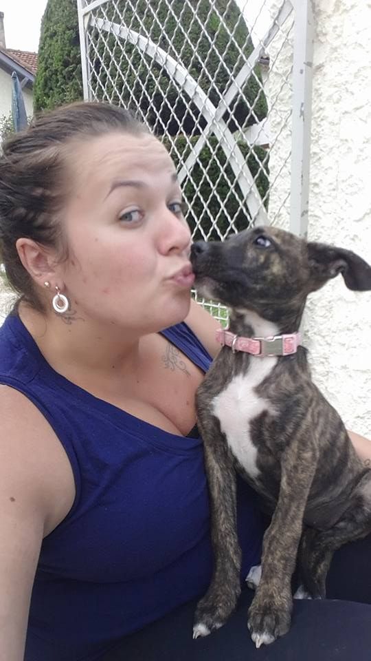 | Dire merci | Elle est trop mignonne. Elle a eu la chance de croiser la route de celle qui l'a ramassée, et la tienne ensuite ![]() Cest bi2arre, je lui trouve un air de lévrier quand on voit sa tête, mais ses pattes me font penser à du boxer/staff... |