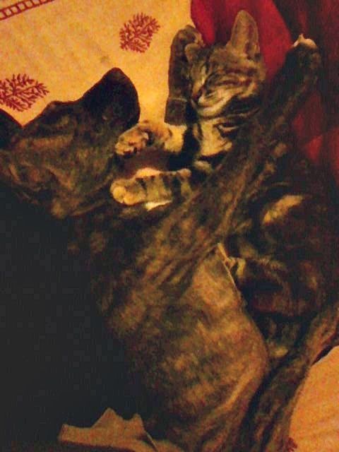 | Dire merci | voilà quelques nouvelles de Lorka, après une visite véto aujourd'hui !!! Donc la belle fait 5kg8, est et en très bonne forme, rien de spécial, il faut lui faire reprendre du poids tranquillement !!! Elle aurait en fait entre 2 mois et 2 mois et demi grand maximum, et croisé staff, mais la véto n'a pas voulu trop s'avancer la dessus ![]() Vaccins et identification, fait, elle à était parfaite, et n'a même pas pleurée !! et pour finir une petite photo prise à l'instant !!! ça aide d'avoir 2 bébé du même âge :![]() " alt="" /> |