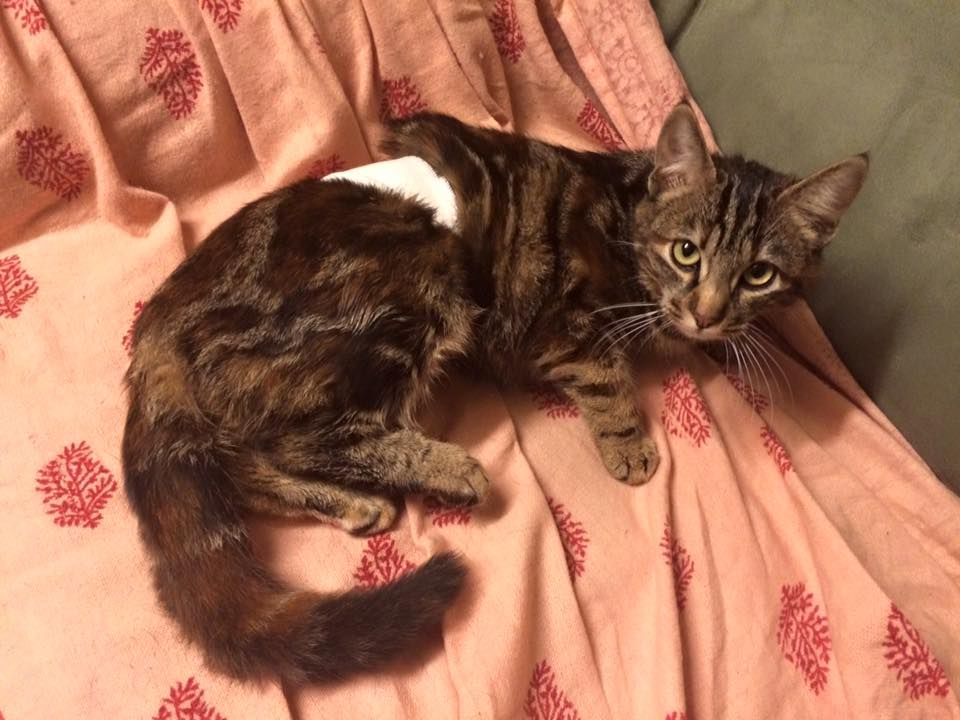 | Dire merci | Je suis étonnée que pour une stérilisation de chat ton véto a mit une bande ! Moi avec Lili on avait la colerette quelques jours puis voilà. Après c'est peut-être une alternative ? |