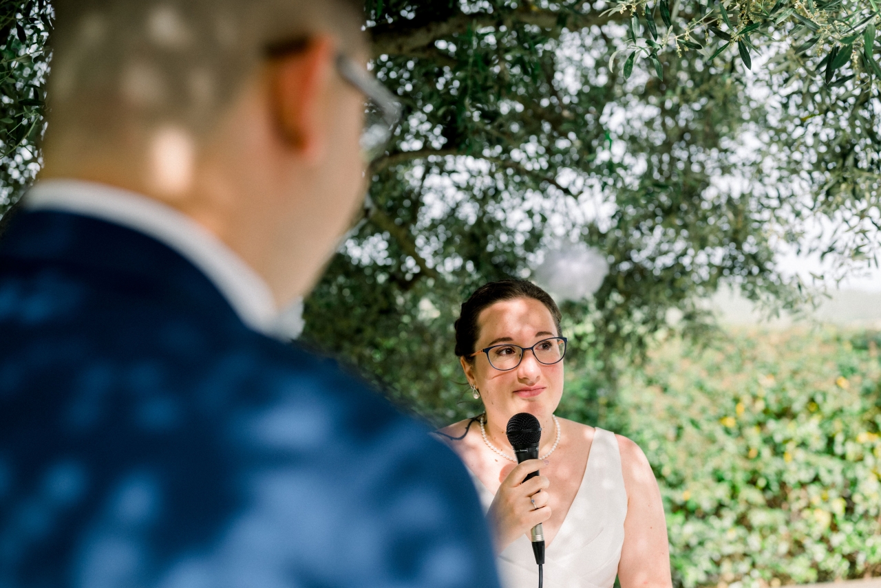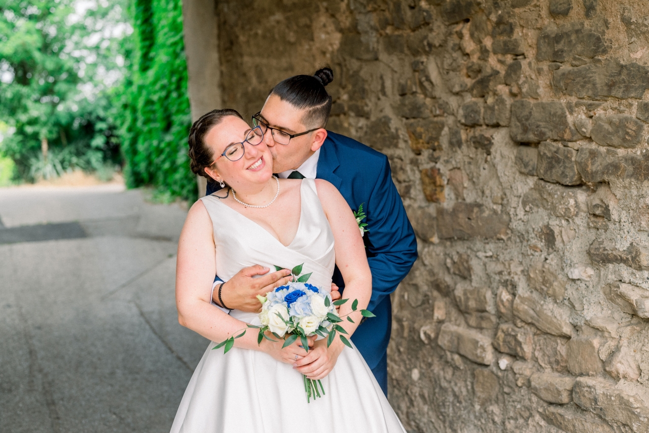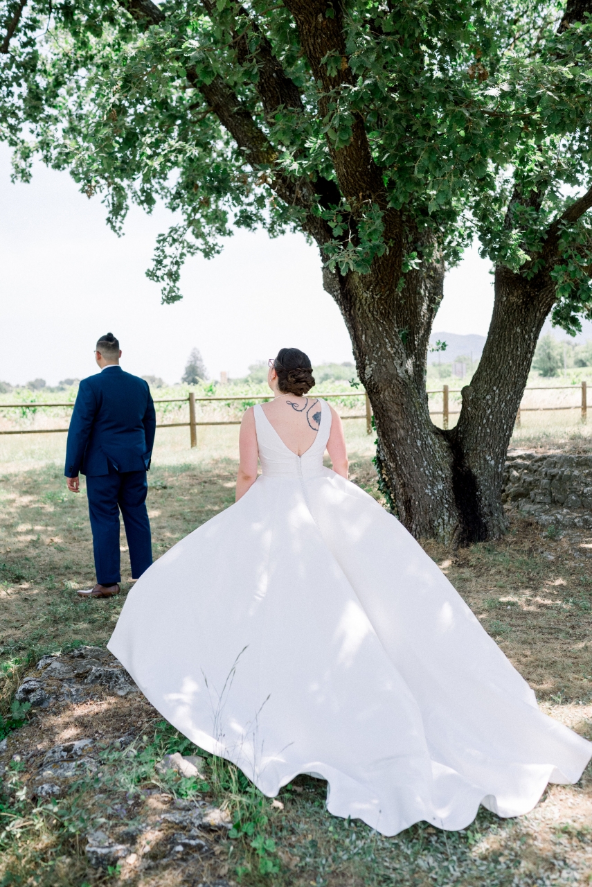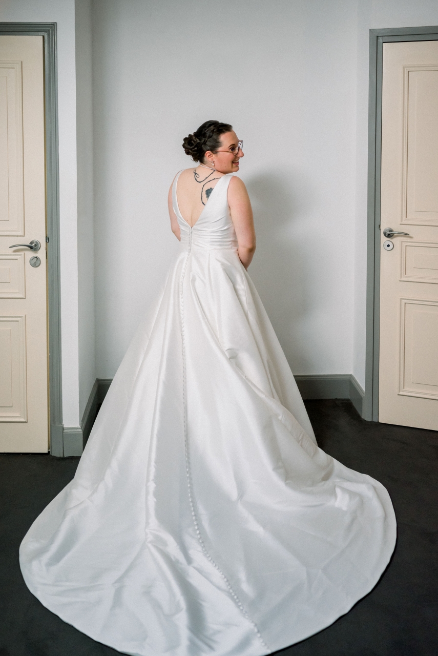Je me suis préparée au domaine de la salle de réception, avec mes deux témoins et ma maman, alors que mon conjoint se préparait chez lui (dans le même village que la mairie où l'on s'est marié) avec l'un de ses témoins et ses grands-parents (son autre témoin, sa soeur, était avec sa mère pour décorer l'extérieur du domaine de réception pour nous faire la surprise, et ensuite elles ont dû se préparer elles aussi). On a bien rigolé avec mes témoins (ma soeur et ma meilleure amie), c'était ambiance légère, malgré un coup de stress en sortant la robe de son fourreau quand j'ai réalisé qu'il manquait l'une des pressions invisibles qui servait à replier la traîne de ma robe sur elle-même (tant pis, mais sur le coup j'ai paniqué). Beaucoup de larmes quand j'ai enfilé ma robe, et des photos rigolotes également, mais je ne mets pas celles où les invités etc sont identifiables ![]() ![]() ![]() Je voulais coudre notre coussin à alliances, au final mes compétences en couture ne me le permettaient pas, mais je l'ai brodé au point de croix et c'est une amie (et cousine de mon mari, qui a aussi été notre "dame marieuse" pour la cérémonie laïque) qui l'a tout assemblé Mon beau-père (mari de ma maman) et mon petit frère sont venus me "découvrir", là encore beaucoup de larmes ![]() (Bon là photo permet surtout de voir la coiffure ...) Puis mon beau-père m'a emmenée en voiture dans notre lieu de "découverte" avec mon conjoint, en sortie du village où on s'est marié, pour une rencontre en toute intimité j'étais avec mon conjoint pour son costume, le gilet a été rajouté par la suite, je ne l'avais pas vu porter l'ensemble mais c'est tout. De son côté, je lui avais montré la photo de la robe sur internet avant que j'aille l'essayer pour savoir si elle lui plairait, mais c'est tout, donc surprise totale (sauf la coiffure qu'il avait vue à l'essai).![]() ![]() Ma belle-mère nous a rejoints avec ma fille pour des photos tous les trois, puis elles sont réparties en direction de la mairie, et c'est mon beau-père (le papa de mon mari ce coup-ci ) qui nous a emmenés à la mairie pas de mariage ni avant ni après donc on n'était pas pressé par le temps (dixit le maire).Le maire connait très bien la famille de mon mari donc c'était un peu "personnalisé", mais léger. On a choisi de ne pas échanger les alliances à la mairie, donc seulement les signatures à ce moment là. On est entrés sur "I Think I Wanna Marry You" de Bruno Mars (on ne trouvait pas ce qui nous plaisait, mais c'était très bien) et on est sortis sur "Wonderwall" d'Oasis ![]() Ensuite on a fait quelques photos de couple au coeur du village (où on s'est marié mais surtout où on a grandi tous les deux) ![]() ![]() ![]() (La Sainte Victoire en fond) ![]() Puis retour à la mairie où on avait laissé la voiture, et là, malheur voiture hybride, il faisait un peu chaud, mon beau-père avait oublié les warning ... On ne redémarre pas sachant que beaucoup d'invités avaient pris la route vers le domaine de réception sur notre demande pendant nos photos. J'ai dégaîné mes câbles du coffre de ma voiture (que ma belle-mère avait prise pour emmener ma fille car siège auto dedans), ça ne marche pas. Un ami qui a une belle voiture était encore là, on prend les fleurs de la voiture d'origine et on les met sur la sienne, il devient notre chauffeur puis le grand-père de mon mari arrivera pour charger la batterie de la voiture d'origine qui nous rejoindra plus tard. |