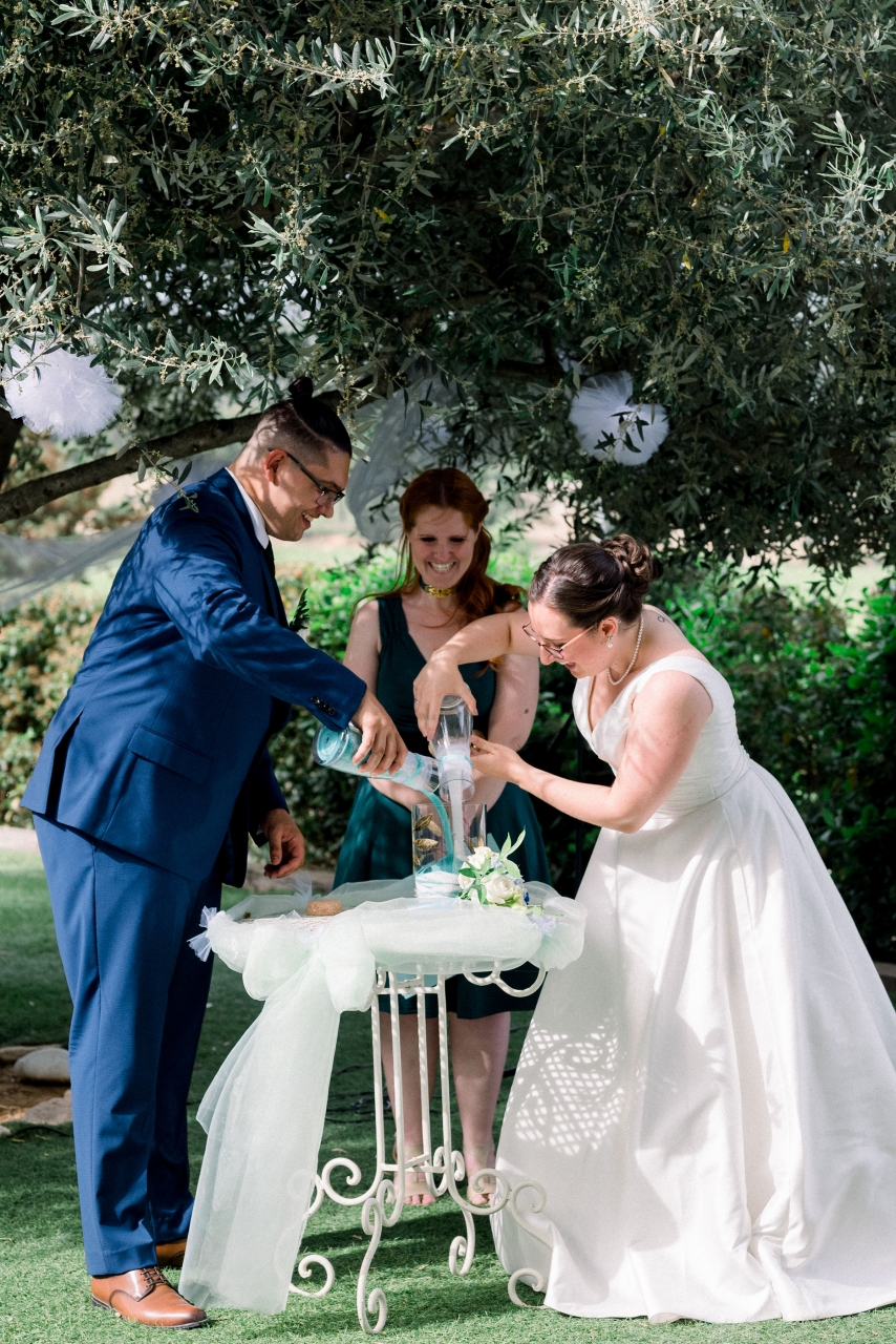 Photo du coussin d'alliances oubliée : ![]() On arrive au domaine, rafraîchissements, discussions, on découvre la déco, c'est beau ma belle-mère a entendu mes demandes et a fait quelque chose de superbe. On est un peu en retard sur le planning mais rien de grave, j'avais prévu l'accumulation de retard ![]() Le lieu de la cérémonie laïque, une partie du domaine de réception On invite tout le monde à se placer pour la cérémonie laïque, je rentre dans le mas où se déroulera le dîner (le jardin de la cérémonie laïque est en contrebas, il y a de magnifiques escaliers qui mènent de la salle au jardin) avec mon papa qui m'emmènera. La musique commence, celle de Titanic en version instrumentale, et mon mari arrive avec sa maman, puis on descend les escaliers avec mon papa pour le rejoindre ![]() Notre officiante adorée prononce son discours, puis on a choisi de faire un rituel, le rituel du sable, pour symboliser nos vies entremêlées et l'arrivée de notre puce avant notre union officielle. ![]() Ensuite ce sont les discours des témoins, le meilleur ami de mon mari commence, il savait qu'on avait pris "musiques de films" en thème pour la cérémonie, il a vu avec le DJ pour "entrer" sur la musique de Dark Vador c'était génial. Puis nos autres témoins, beaucoup plus dans l'émotion là, des pleurs des pleurs, qu'est-ce qu'on a pleuré cette journée Et ensuite, on prononce nos voeux et on échange nos alliances, c'est moi qui commence ![]() Je vous ai dit que je n'avais fait que pleurer et bien sûr encore plus de larmes quand mon mari a prononcé ses voeux Puis bisou des mariés et sortie sur la musique de Jurassic Park ![]() On a enchaîné sur les photos de groupe puis on est remonté au niveau de la partie terrasse pour le buffet apéro, avec musique en fond, les DJ ont géré ça a même dansé pendant l'apéro, c'était au top ![]() ![]() La salle : ![]() Table des mariés : ![]() Les tasses-bougies place-personnes : ![]() Dans une salle attenante à celle du repas, beaucoup plus petite, on a mis une table pour l'urne et le livre d'or (et mon Polaroid numérique pour que les gens s'amusent et comment leurs photos !!), et l'espace des enfants avec coloriages etc ![]() Le temps n'était pas au top le jour J, il a fait soleil puis gris, ciel un peu blanc, on a senti trois gouttes pendant le cocktail alors vite vite dans les vignes du domaine pour une petite session photos de couple (ouf les gouttes se sont vite arrêtées) ![]() ![]() Puis tout le monde est rentré dans la salle, il ne restait que nous ![]() Nous sommes rentrés sur "Mon Essentiel" d'Emmanuel Moire Le repas était délicieux, très copieux je n'ai pas pu tout finir, et quand on finissait notre assiette on faisait le tour de tables pour voir nos invités. Apparemment pas mal de monde pensait que le repas c'était l'apéro et qu'on ne rentrerait que pour le gâteau !!! Avant le dessert, ouverture de bal moi avec mon papa et mon mari avec sa maman. Sur "I Don't Want to Miss a Thing" d'Aerosmith ![]() ![]() Et ensuite, le gâteau pièce montée classique, on avait oublié qu'on avait pris l'option "fusées lumineuses" avec la pièce montée sur l'opening de Fullmetal Alchemist : BrotherHood (deuxième opening je crois)![]() ![]() Message édité le 12/05/23 à 13:51 |