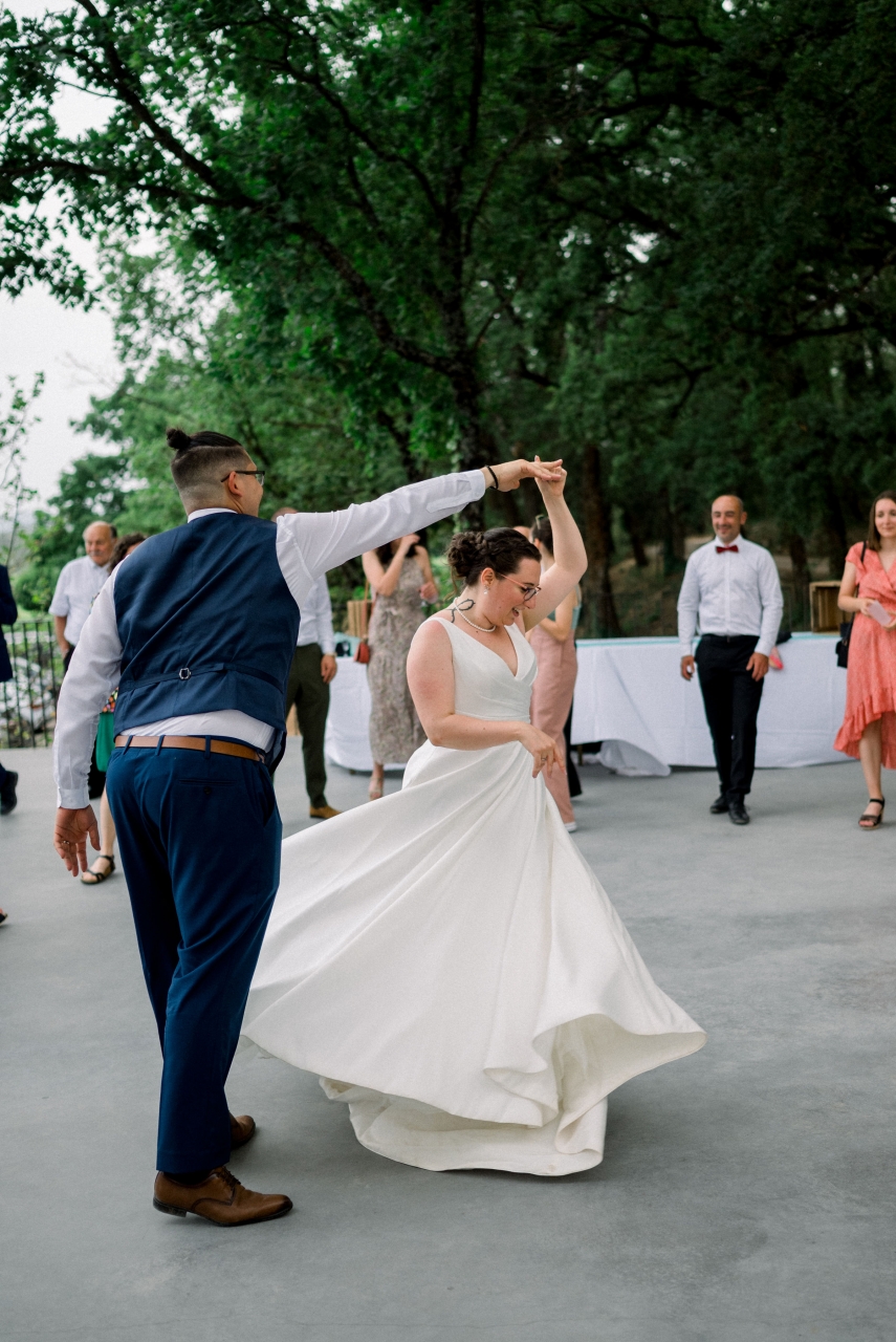| Dire merci | Des amis ont fait une ouverture de bal que j'ai adoré. Ça commençait en mode dirty dancing. Tu te dis aller la choré Nian nian cliché.... Et après ça partait en choré avec plein de petits pas de danses et de chansons différentes et parfois drôles. C'était super !! Mais je me serais imposé ce stress de choré a apprendre. |
