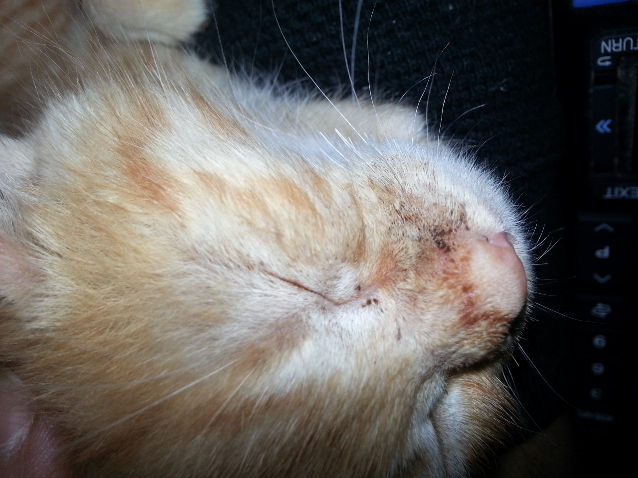 et ça ne ressemble pas à ce qu'a ce chaton. Mais peut être que sur la face ça ne se déclare pas comme sur le corps