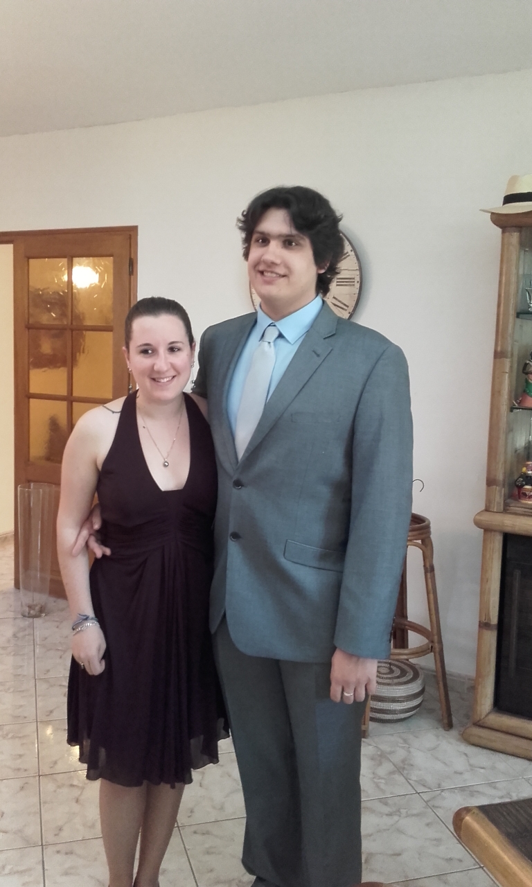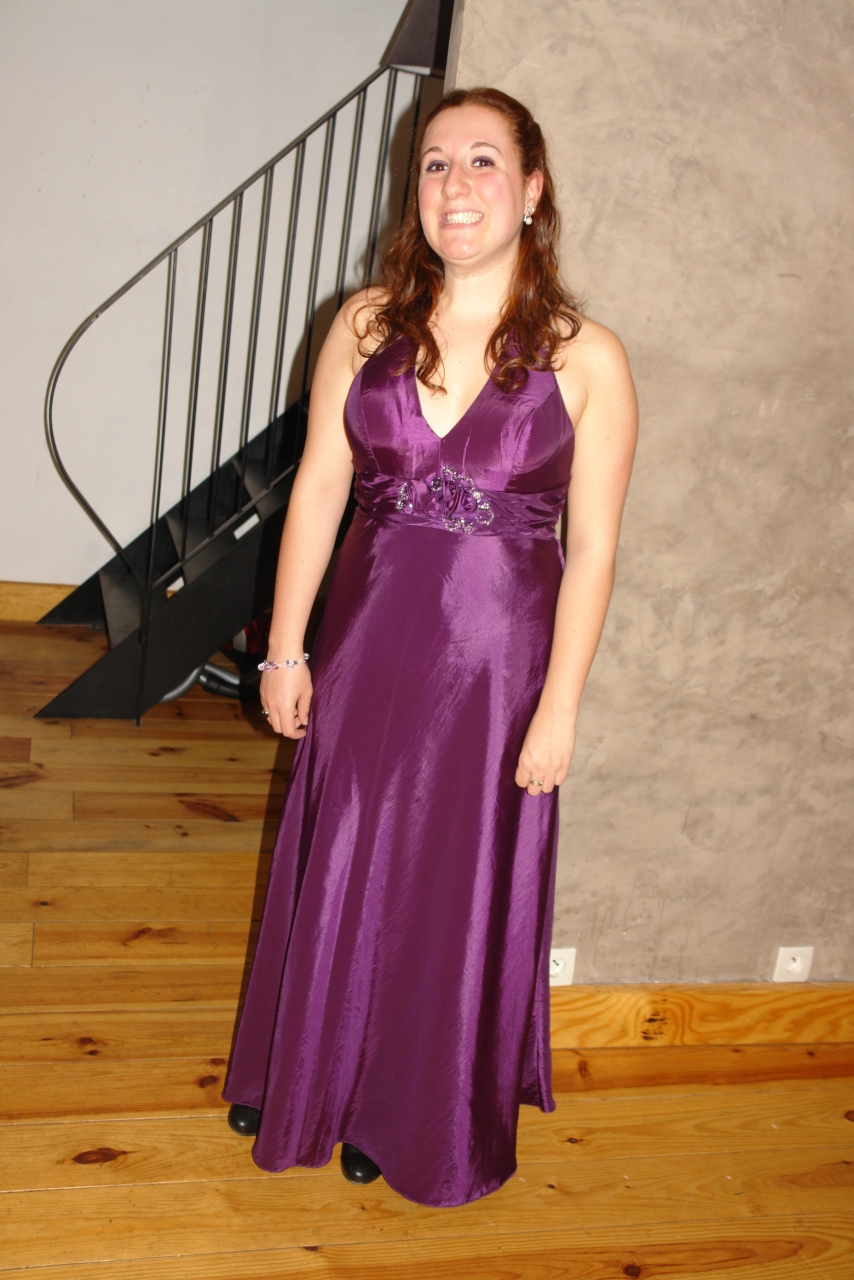 | Dire merci | Ca y est le gala est terminé ! Une petite photo pour ma tenue (avec chérichéri à côté) : ![]() J'avais une petite pochette noire pour avoir téléphone/mouchoirs/papiers d'identité/clés de voiture, des collants chair et des petites ballerines à talons (3cm maxi) noires. Niveau coiffure, j'étais complètement à la bourre donc tresse plaquée. Peu de maquillage, du crayon noir autour des yeux, du crayon violet à ras les cils du haut et mascara noir. C'était une super soirée en tous cas !!! |