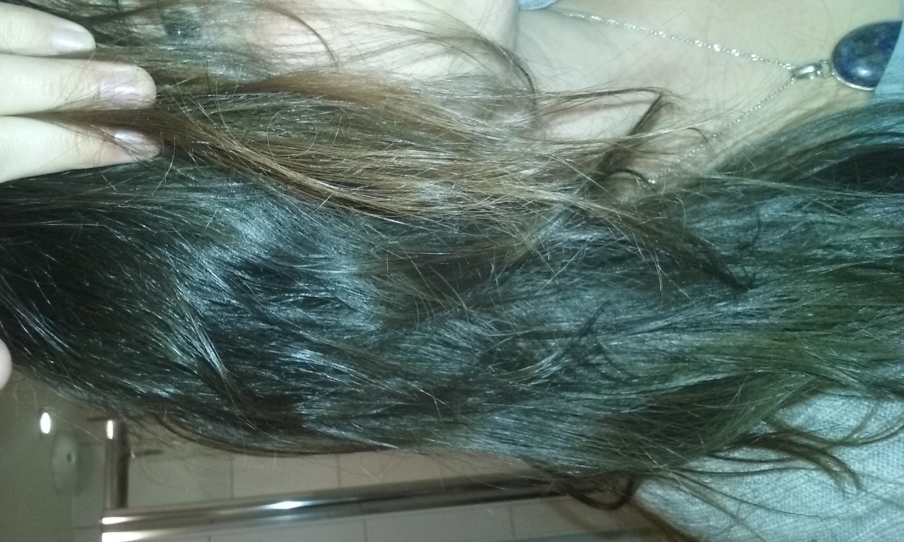 | Dire merci | On ne voit pas grand chose malheureusement en photo avec mon portable. Ce que je tiens entre mes doigts, c'est une mèche non colorée de mon côté gauche, pour comparer. ![]() Heureusement, j'en suis à mon deuxième masque (crème Coco, puis Crème coco + argile blanche), et je trouve qu'il y a du mieux . |