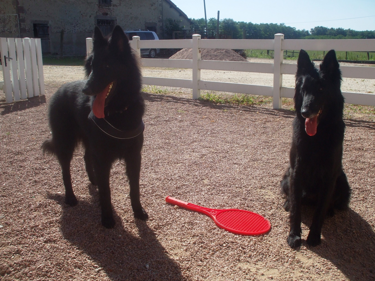 | Dire merci | La photo est trompeuse Faust, c'est un tout petit gabarit puisqu'il fait 23kg! La BAT est un petit gabarit aussi, elle doit faire 26kg mais elle change encore. Mon malinois n'est jamais parti après les chevaux, il reste très très prudent vis à vis d'eux contrairement à la BAT. |