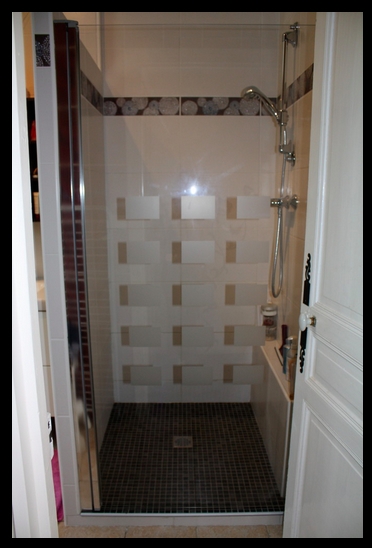 | Dire merci | Nous, on a remis du carrelage sur l'existant, ça fait du temps d'économisé et aussi des sous ![]() On a pris un carrelage carré blanc, ce qui est très peu couteux, et on a mis une jolie frise pour le rehausser. Mon frere a trouver un super ensemble vasque en porcelaine avec mitigeur grohe + meuble haut ds une ressourcerie. Elle lui a coûté 50€ et de l'huile de coude pour la nettoyer, mais elle était en super état, quasi neuve! |