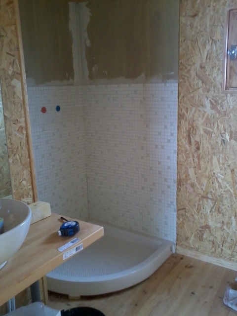 | Dire merci | cicitt Je ne peux pas te l'affirmer, nous avons fait çà juste pour les murs de la douche ( pas pour le sol ) et j'ai oublier de préciser qu'on a mis par dessus l'OSB des plaques hydrofuges... Et à chaque raccord de plaques, il faut mettre du " grillage " coller avec la colle spéciale pour éviter les fentes ( qui servira pour les carreaux aussi )... Il me semble que c'était la même technique pour le sol, mais je ne veux pas dire une bêtise, je me renseigne pour le sol et te confirme... Chaque marques à ses façons de faire et, il y en a qui sont bien plus chères et compliquer à mettre en oeuvre que d'autre... C'est comme çà qu'on a fait pour les murs : 1 passer le produit imperméabilisant ( avant d'avoir mis le bac à douche ) 2 coller dans l'angle le grillage 3 carreler ![]() |