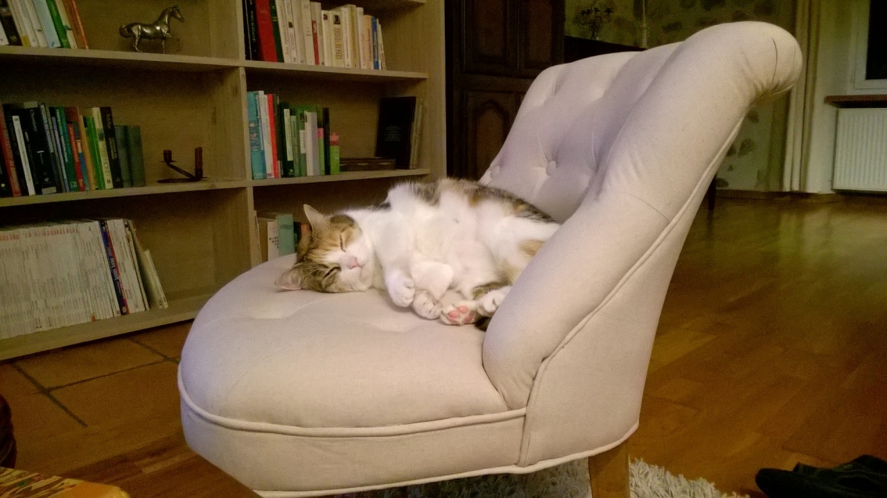 | Dire merci | Il faut investir dans un fauteuil à chat! Depuis que la mienne se prend pour Twix-Antoinette sur son trône c'est moins la comédie quand on va au lit ![]() |