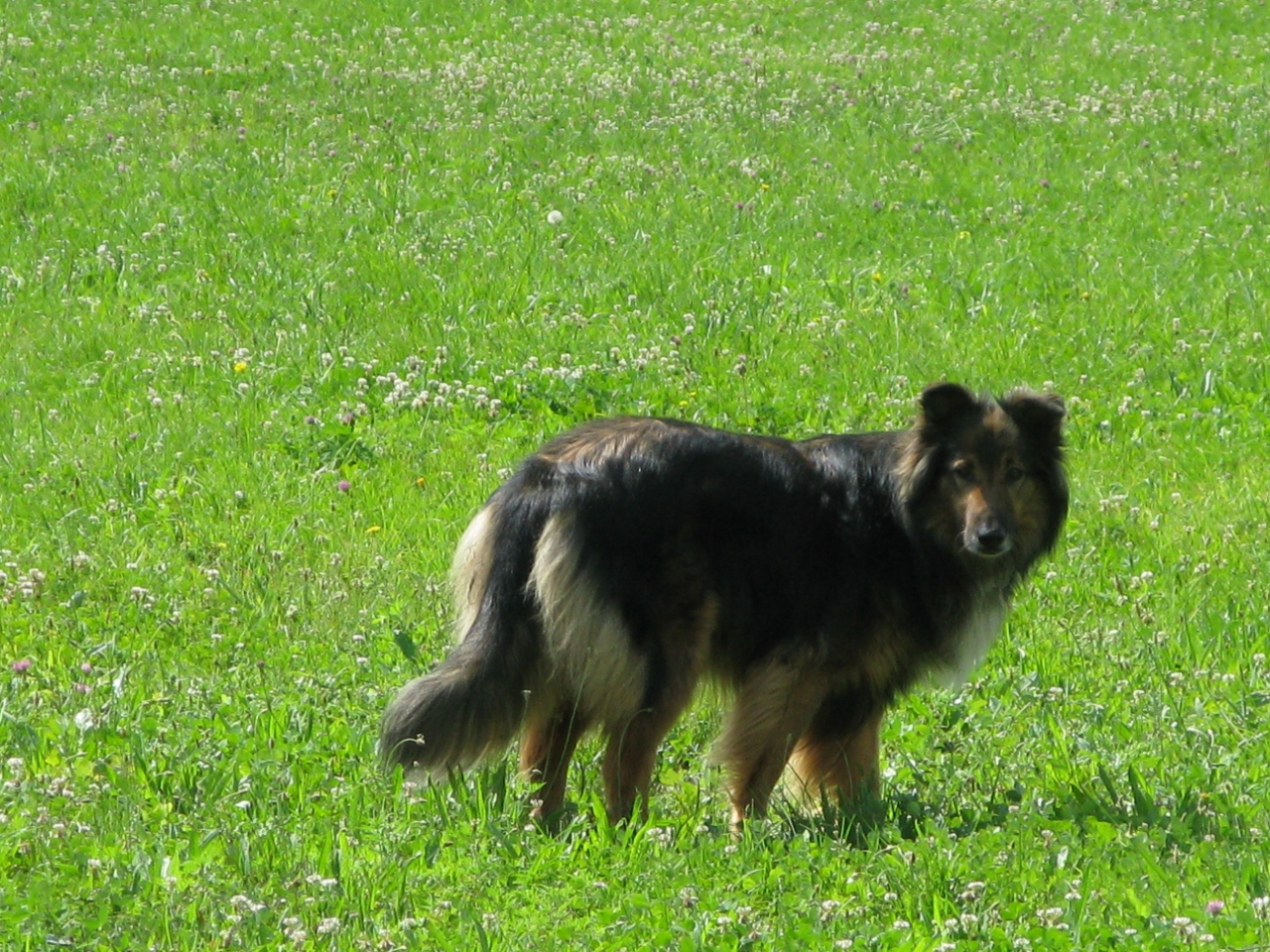 | Dire merci | mes 2 shetlands , le fauve 3 ans et le tricolore 1 an ! je pense que niveau caractère ca doit être proche du colley, des crèmes proche de leur maitre, facile à éduquer calme et sportif malgré tout. ![]() |