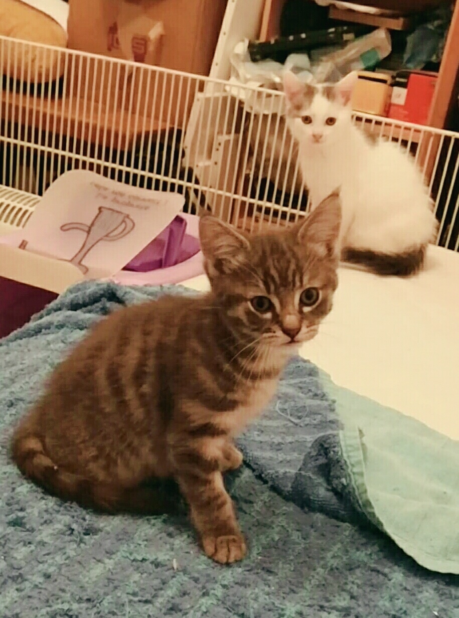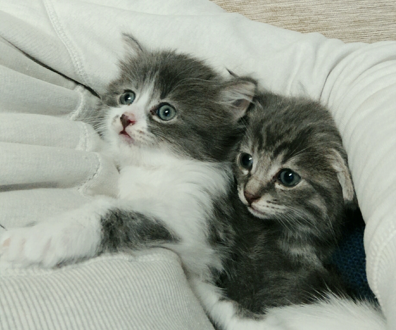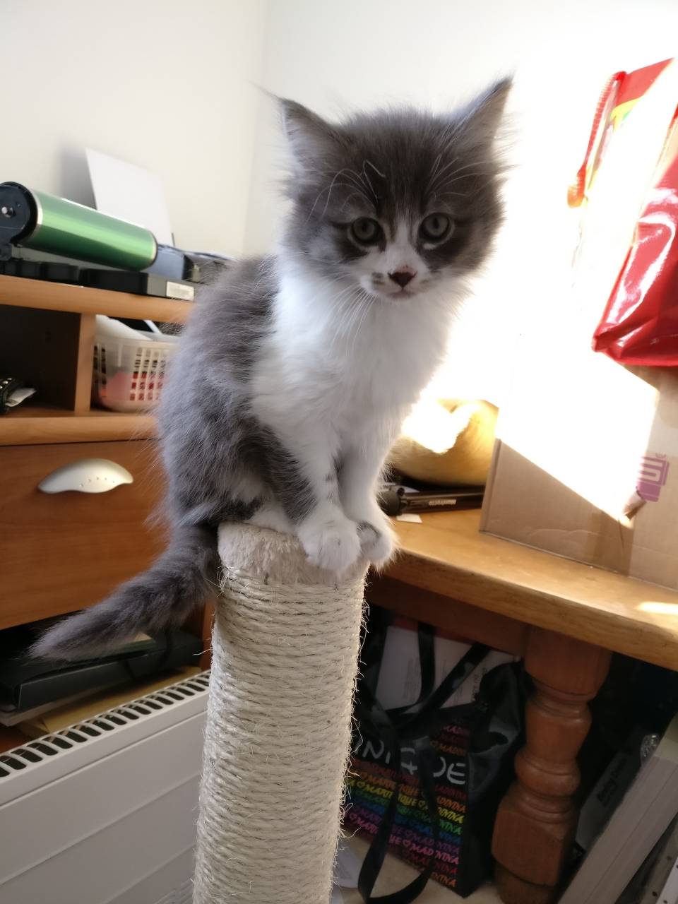 | Dire merci | La petite grise est adoptée par un copine, on l'a encore en garde un trimestre le temps qu'elle s'installe ![]() La peste grise et blanche est complètement secouée, elle saute partout et fonce sur nos chats adultes sans se poser de question, avec sa grosse queue et sa marche en crabe 😂 Le gros blanc commence à avoir un beau bidou !! Il s'échappe régulièrement de la chambre puis se retrouve comme une andouille à miauler dans un coin tout seul ... Les petits boulets |