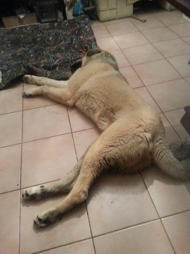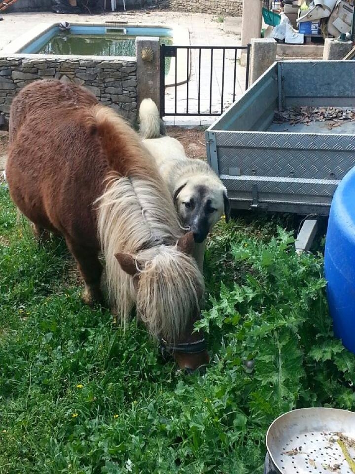 | Dire merci | Merci pour vos messages de soutient...Ca fait chaud au cœur Le petit a bien pris le relais. Même si Cina nous manque beaucoup, je trouve que Moogly fait de son mieux pour être a la hauteur d'un bon chien de garde. C'est d'autant plus difficile pour lui de faire sa place au sein d'une famille qui a perdu son fidèle compagnon récemment. Il a su nous montrer qu'il prenait le relais avec brio. Il est tout jeune alors on l'emmène partout et il apprend vite a se familiariser avec l'exterieur. Le contact avec les autres animaux de la maison se fait petit a petit. En ce moment, vu son age, il est en mode "golden retriever" dans une peau de kangal alors on l'habitue a tout avant qu'il ne "murisse" dans sa tête. Premier contact avec le poney (lui est adorable) ![]() Balade avec une chienne du quartier... ![]() Les journées sont épuisantes...Pour vous donner une idée de sa taille, les carrelages font 33cmX33cm ![]() |