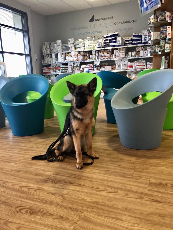 | Dire merci | ![]() ce matin à la clinique véto , elle tient déjà sa place assise sans bouger ! |