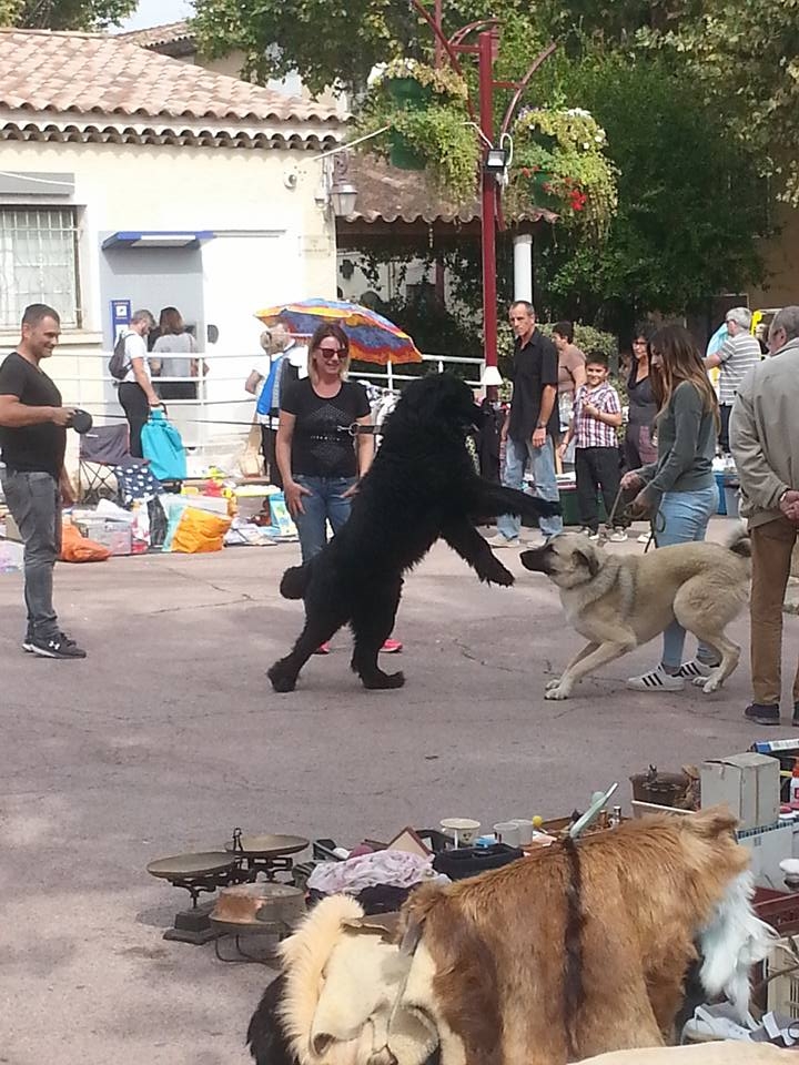 | Dire merci | C'est embêtant les grossesses nerveuses et ça recidive souvent...On avait une chienne comme ça et franchement, elle le vivait mal (nous aussi). Moogli nous fait une belle gastrite...véto 2 fois, osteo et radios. L'osteo lui a remis une vertèbre en place (qui gère la digestion parait-il). Il s'est bien comporté a la manipulation! Sur les radios pour l'estomac, car je pensait a un corps étranger coinçé, on en a profité pour voir les hanches (ok) et les dorsales (ok) Il a un traitement de base et un changement de régime alimentaire. Il etait au barf mais ça ne lui convient plus. Donc retour a la gamelle traditionnelle fait maison et ça va mieux. Aujourd'hui il est venu me retrouver au vide grenier et il a joué avec tous les chiens qui passaient C'était de l'Akita Americain, Dobermann, Teckel, Malinois, terre neuve (photo)...au spitz!...Un Moogli de gala! ![]() ![]() |