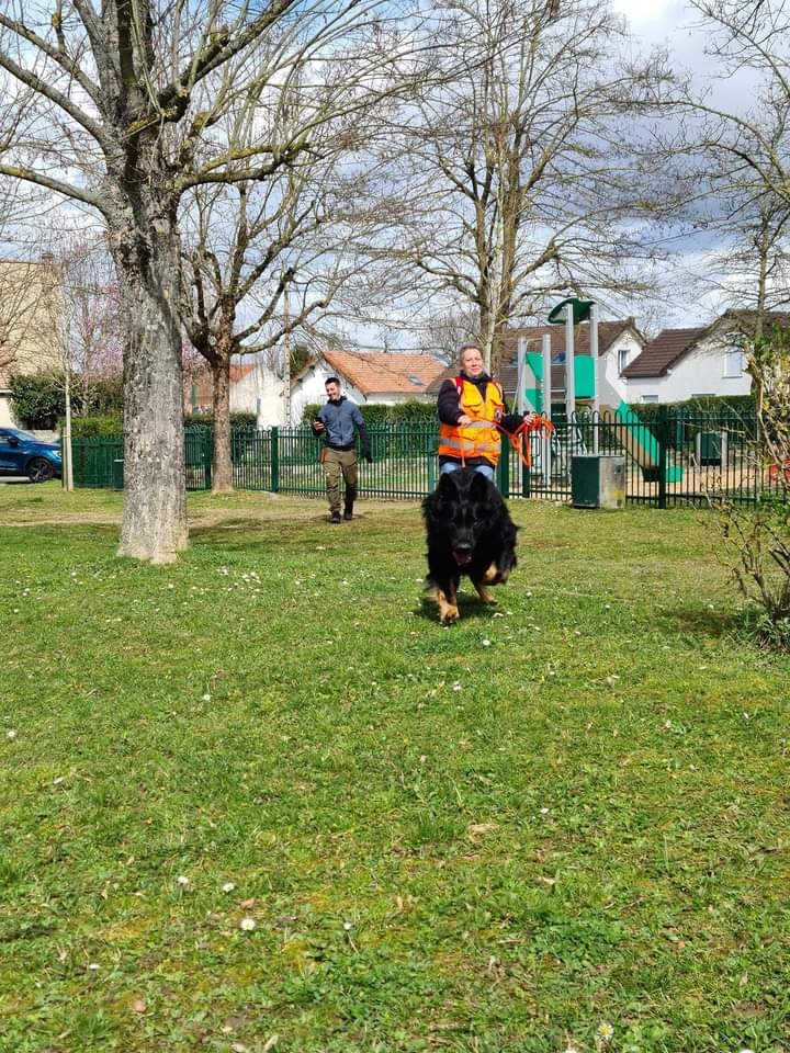 | Dire merci1 | Gotham en Mantrailing, au moment où il retrouve sa "victime". Ça se voit à peine qu'il adore ça ![]() |