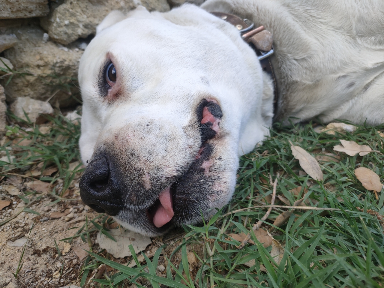 | Dire merci | Quand Sirius est allé courir dans les épillets, il en a eut dans l'oeil aussi ... Mais pas de soucis. Retiré de suite et ocryl pour nettoyer. Vraiment de la merde ces trucs là ! |