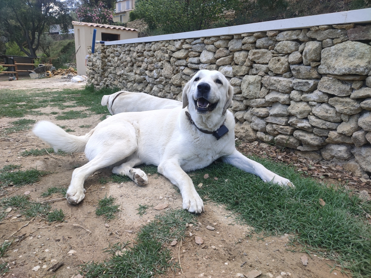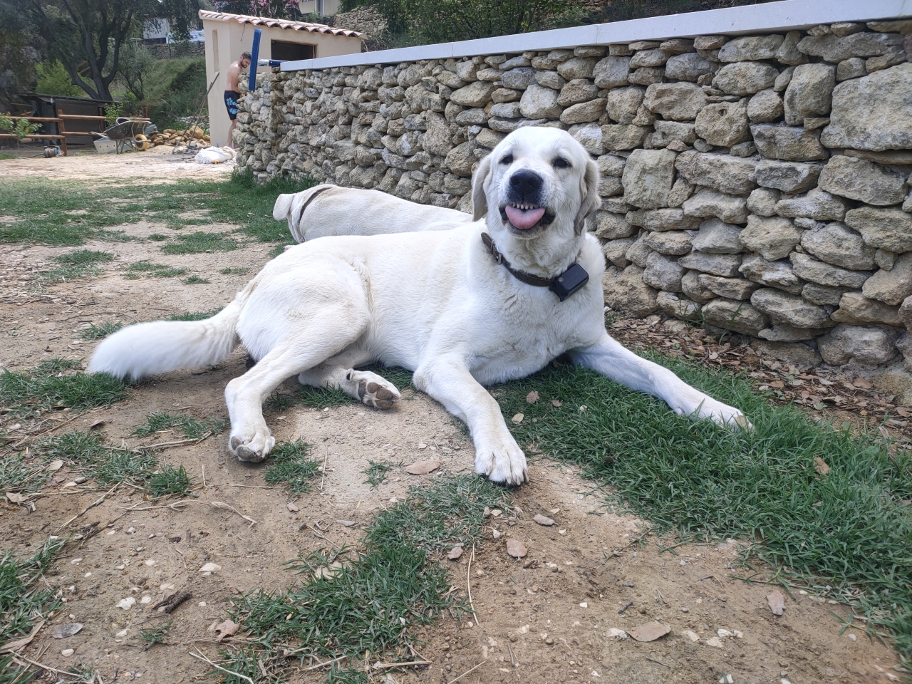 | Dire merci | Un gros bébé de 30 kg tout deguingandé Mais balade en liberté et rappel acquis, même si des fois il veut jouer donc il essai d'essayer. Mais il reste quand même très facile. |