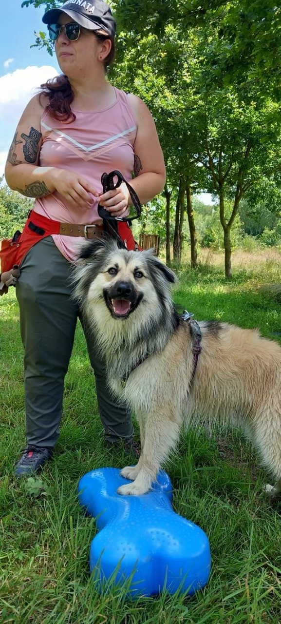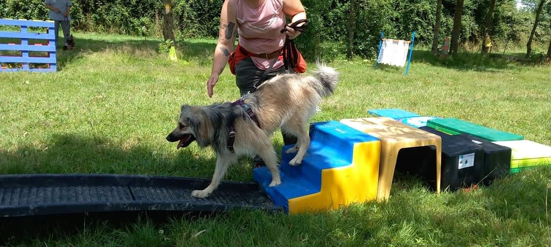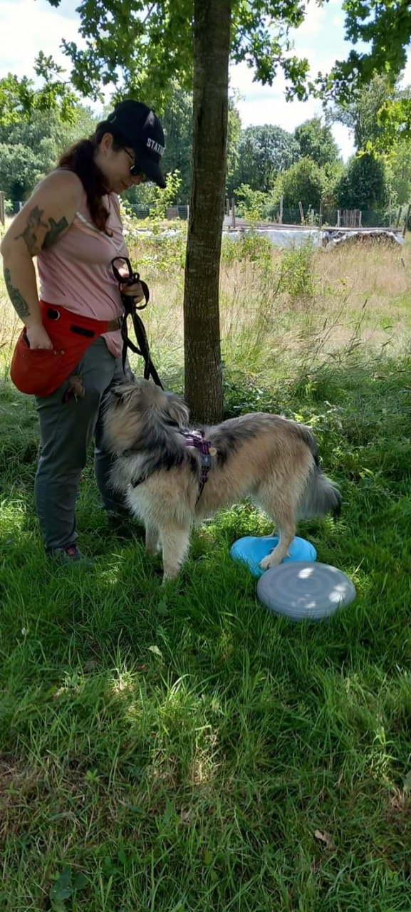 | Dire merci1 | La c'était de l'initiation donc les obstacles n'étaient pas trop compliqués. Mais la complication se trouve dans le contrôle des papattes (ça m'a fait penser au contrôle des pieds des chevaux), comme juste deux pattes sur un objet et pas les 4 ... Et aussi les parcours avec différents obstacles. Là où j'ai perdu des neurones a Sirius c'est un moment où il devait avoir les deux pattes arrières sur une planche en mousse et pivoter sur les postérieurs pour avoir les deux pattes sur des coussins a différents endroits. Mais j'ai perdu les miens aussi J'ai trois photos pour illustrer Contrôle des pattes sur différents supports ![]() ![]() Et un petit parcours ![]() Pour la relation c'est chouette aussi, car ça travaille la confiance du chien envers l'humain. Bref j'ai adoré ! ![]() |