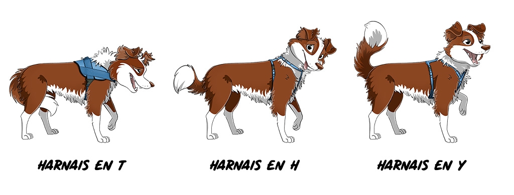 | Dire merci | ![]() Les types de harnais, on privilégie les deux derniers. En marque, il en existe plusieurs, Dog's street I'dog True love Dog Copenhaguen Le tour c'est que ça forme un H ou un Y et pas un T comme les Julius. |