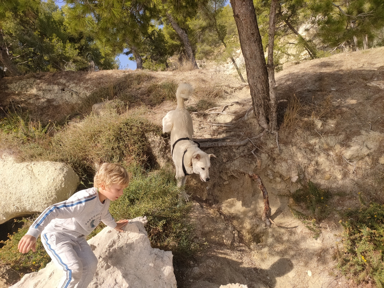 | Dire merci | Chez moi le champion de l'autonomie c'est Lennon. On lui demande quasi rien, voir rien du tout. Juste un petit rappel de temps en temps si faut rattacher ou juste qui revienne près de nous. Il est plus focus auditif que visuel, toujours les oreilles en arrière pour nous entendre et des petits check quand il s'éloigne trop de lui même. Il a son périmètre. Sirius est assez autonome aussi, mais y'a un peu plus de contrôle car plus roublard. Après c'est pas grand chose. On peut croiser des chiens de loin, il y va pas. Si j'ai pas un regard, je rattache par contre, car là je sais que la roublardise peut surgir. Quand on croise je rattache, par principe. J'ai pas assez bossé les croisements pour qu'il reste aux pieds. Il regarde beaucoup et revient beaucoup tout seul pour checker. Les deux là, attendent facilement aux croisements pour savoir où on va mais souvent je les laisse choisir quand je connais le coin. Lennon comme il est vite fatigué, c'est lui qui décide la plupart du temps des tours qu'on fait. Il sait très bien nous dire quand il veut rentrer. Girou lui, c'est l'autonomie mais pas dans le bon sens Il regarde pas du tout, par contre, il fait beaucoup d'allés-retours pour venir nous toucher et repartir, des petits checks. C'est déjà mieux, avant y'avait rien du tout. Mais il rentre très vite dans sa bulle et ça c'est lié à son anxiété en général, selon les périodes. M'enfin globalement, je leur cause pas beaucoup vu les coins de promenades, y'a pas grand chose à leur demander |