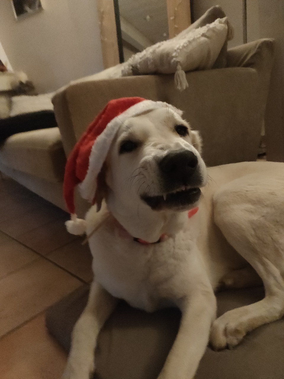 | Dire merci | chien de Noel ![]() ![]() et la meme sans sourire ![]() |