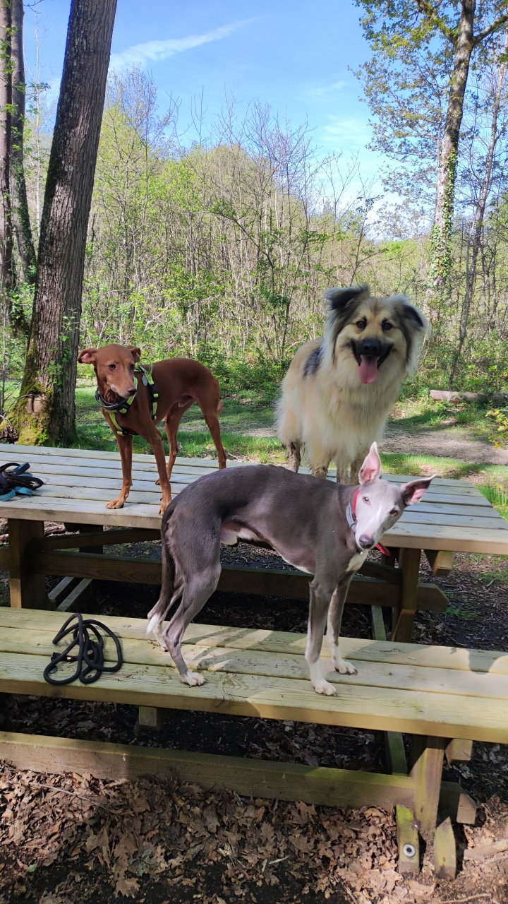 | Dire merci | Je sais pas si je préférai les poils que de la terre.... Parce qu'en ce moment c'est ça je passe le balais tous les jours. On a pu aller en forêt ce matin, ça fait du bien moralement pour tout le monde ![]() (La table a été nettoyée après passage, plus propre qu'avant qu'ils montent dessus ) |