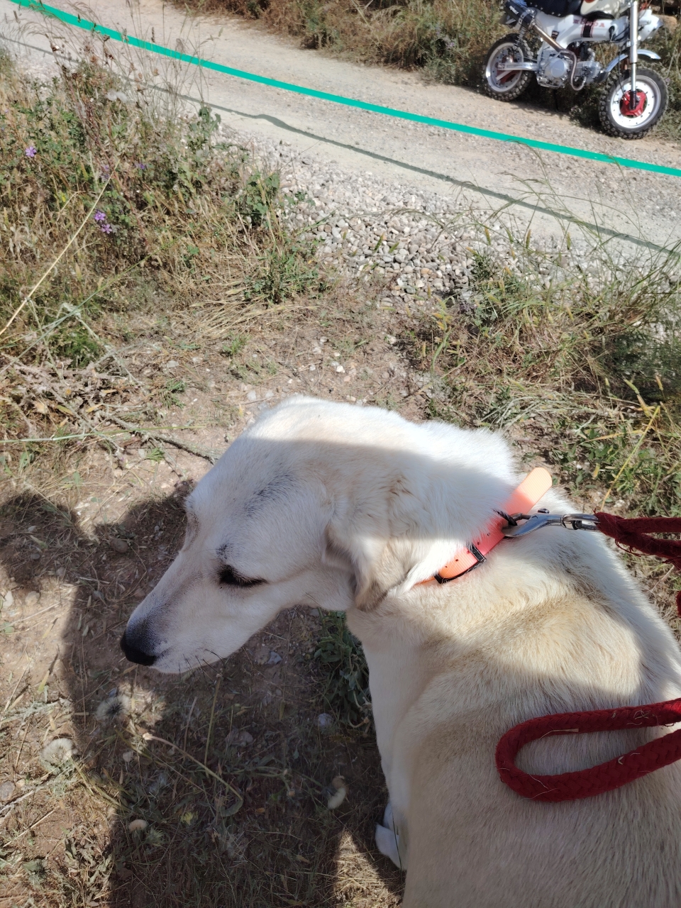 | Dire merci | un petit post pour mes toutous, Itak va pas terrible, encore des ulcères aux yeux, et le librela seconde piqure c'est pas foufou... je crains l'été qui arrive... ![]() En revanche ma grosse, elle est vraiment trop cool comme chienne. Ce week end il y avait une course de côte à coté de chez moi, on est allés a pied avec les enfants et la chienne et on s'est posé pour regarder quelques passages. C'est donc très très bruyant, entre les voitures de course, les speakers, les motos et les gens pour une chienne "qui sort pas de chez elle", (comprendre elle sort se balader chaque semaine mais en colline, mais on a jamais rien travaillé vraiment ni le contact, ni les situations stressantes ou ville etc). Donc je lui mettais les mains sur les oreilles a chaque passage de voiture mais en fait elle était plus occupée a veiller sur les enfants (les miens et ceux d'a côté) bref... un sacré nounours et une stabilité de comportement assez exceptionnelle, depuis 6 ans qu'elle est avec nous ce coté me souffle toujours, elle est parfaitement linéaire et solide dans son comportement, rien ne l'effraie, rien de la fait reculer, elle part toujours du principe que tout est ok.Bon si c'est pas ok c'est plus la meme mais pour l'instant toutes les décisions qu'elle a prise en terme de protection... c'était les bonnes! ![]() là elle est à la laisse c'est exceptionnel d'hab elle est au harnais mais on est un peu parti à l'arrache ![]() |