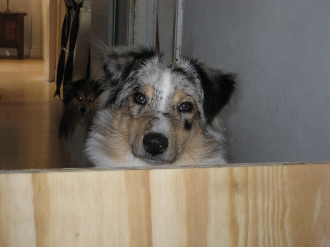 DéconnectéDire merci | Tout mimi, mais je suis bien heureuse que la mienne ait un an demain parce que repasser par la case bébé qui s'accroche dans les jambes de ton pantalon et tout.... ouf! ![]() Là c'est derrière la porte bricolée pour qu'elle n'entre pas dans la cuisine. |