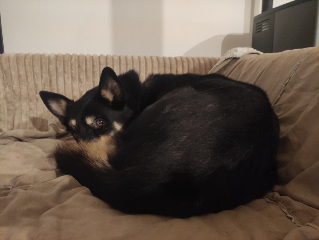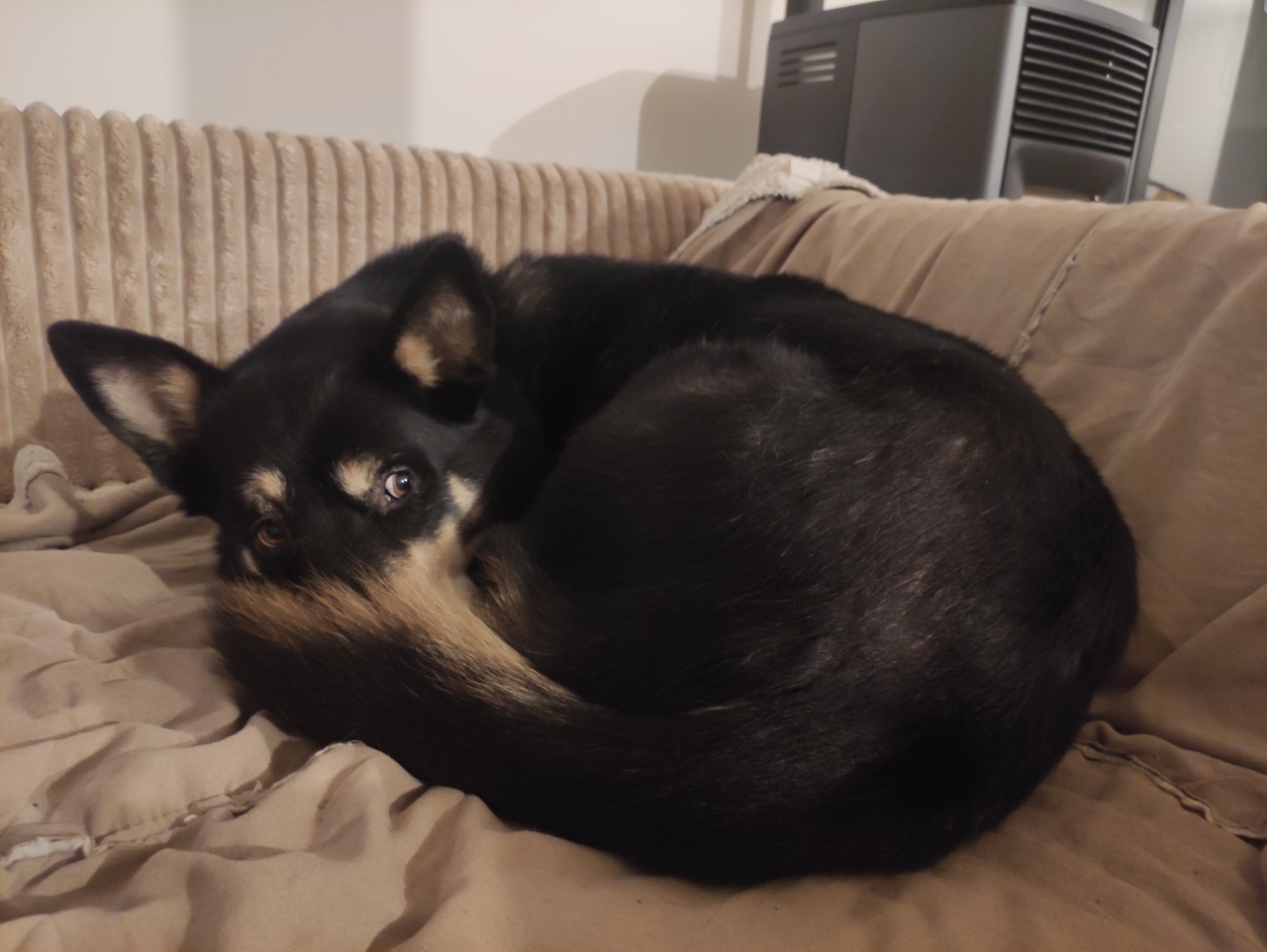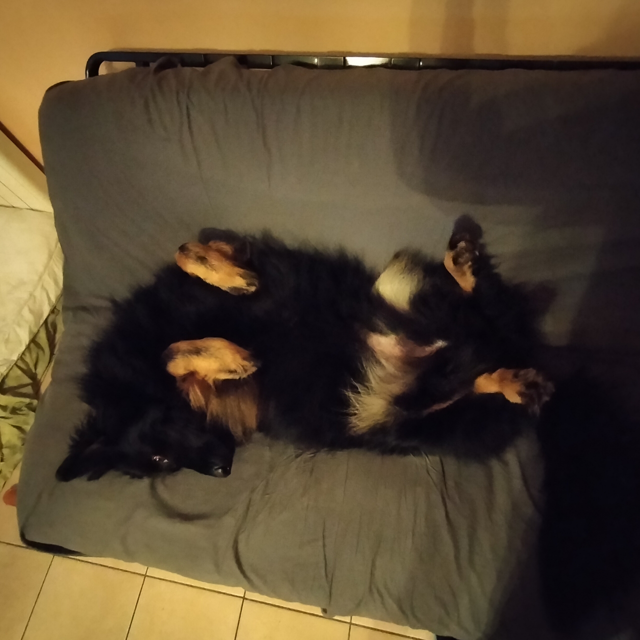 | Dire merci | La Lennon en ce moment c'est notre lit son coussin. Les privilèges de l'âge et le froid fait qu'il préfère être au chaud. Les miens ont différent couchage entre nuit et jour. C'est assez marrant a observer. |