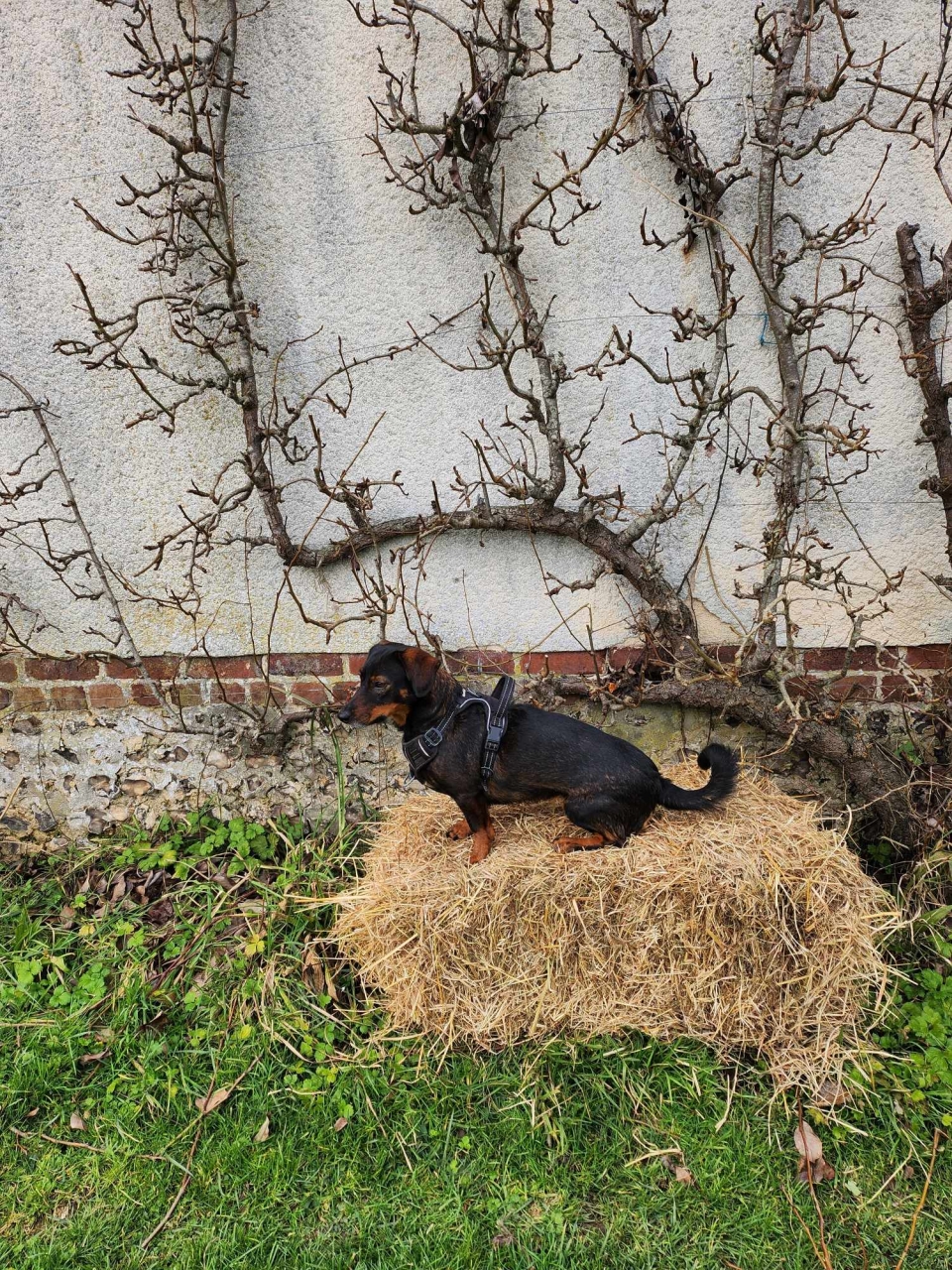 | Dire merci | La moitié je dirais, c'est un tout petit truc. On dirait un croisement de pinsher nain et de chihuahua. Tombée d'une caravane je dirais, vu l'époque et le lieu où je l'ai trouvée 😁 |