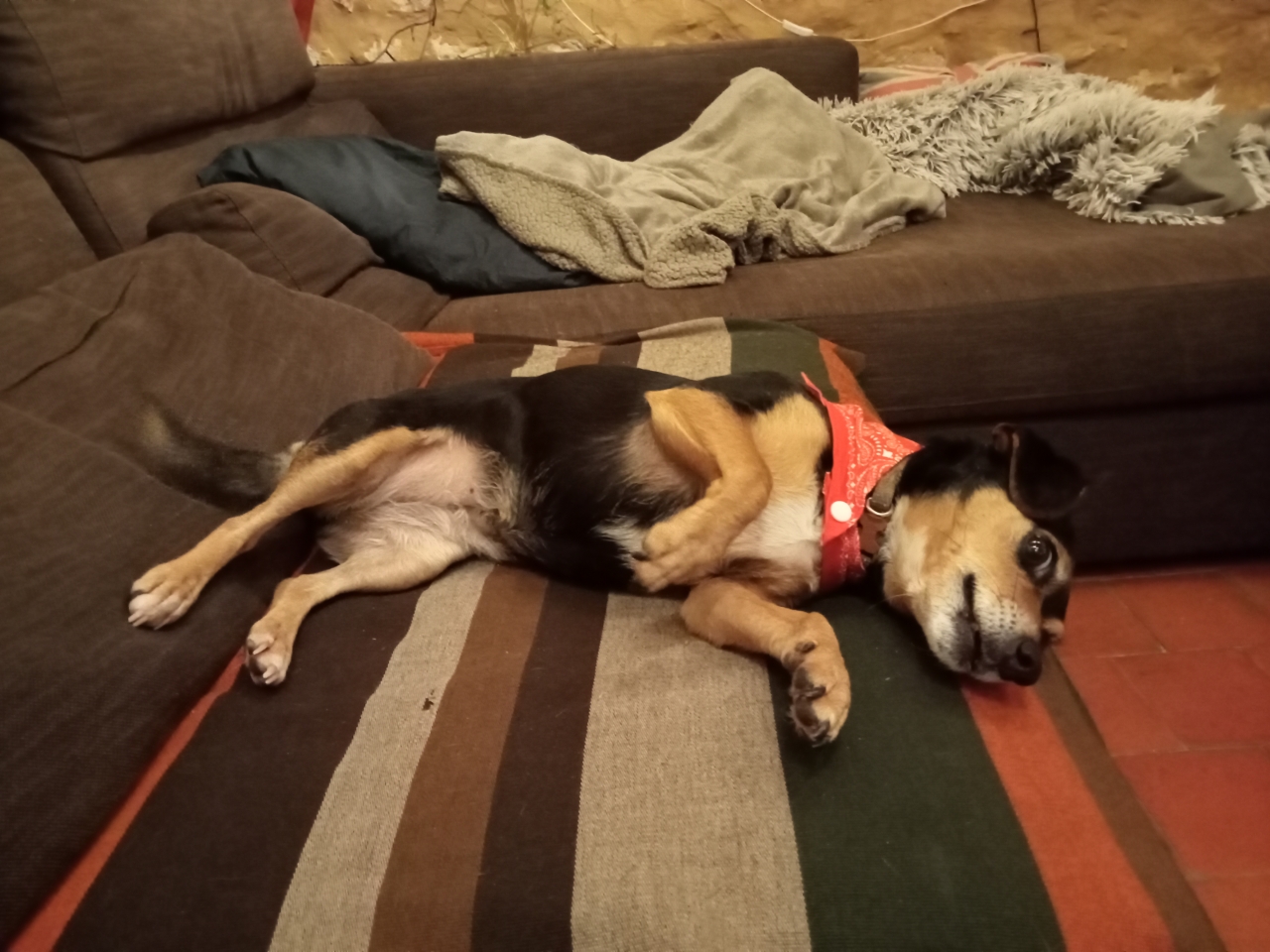 | Dire merci | Lilou adore dormir sur canapé. Ifox aussi mais avec son arthrose il ne peut plus sauter ... Et avec son incontinence on ne risque pas de lui mettre un escalier pour y accéder. |