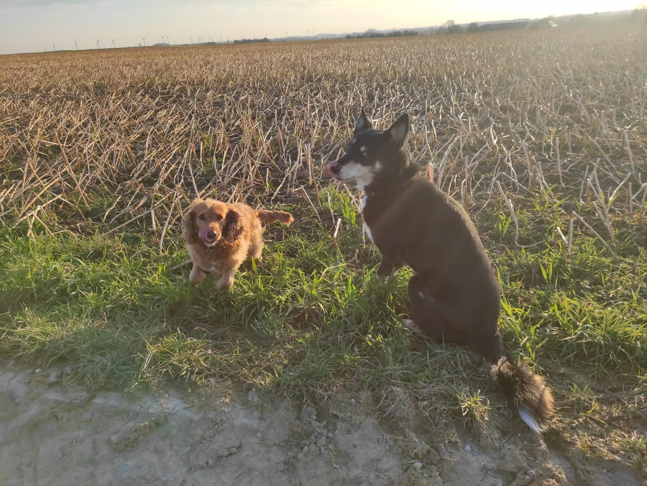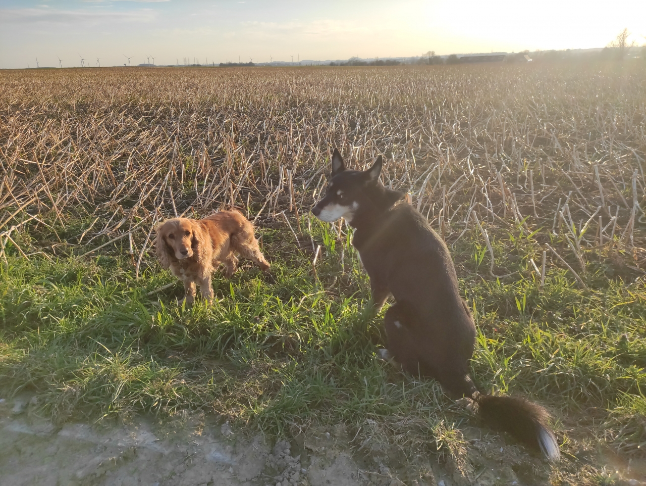 | Dire merci | Pour le berger catalan, c'est pas des chiens que je croise beaucoup. J'en ai croisé un ou deux comme ça en vacances ou en balade. C'est une race assez "pure" et confidentielle. En discutant avec les gens, c'est des chiens sympa, entretien du poils obligatoire. J'avais l'impression que c'était comme le BP face rase, proche de l'humain, autonome et travail dans ce qu'il me racontait. Donc, des choses a faire attention pour ne pas avoir les problématiques liés au berger de troupeau. Sirius avance en mantrailing, 3eme séance ce matin, et il s'éclate. Pas perturbé pour un sous, je suis très contente pour lui, il n'a plus besoin de validation de ma part. Ce qui est assez "paradoxale" avec lui, c'est que en balade, il est très autonome, mais des qu'il est sur une tâche en particulier, faut valider. Et pas nécessairement au travail, parce quand il vient avec moi en éduc, il sait ce qu'il fait. Ça me change de Girasol aussi, qui lui au contraire nous envoie des fucks de l'espace parce qu'il sait ce qu'il a a faire et qu'on l'emmerde Courage Faust, c'est dur de voir vieillir nos toutous plein de courage |