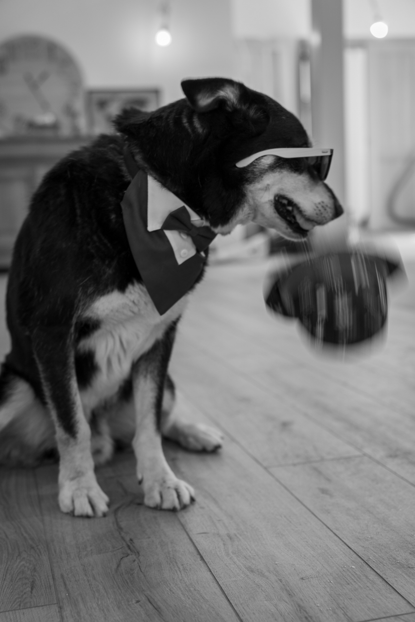 Mariage chez nous, cour ouverte, une bonne centaine d'invités et... Gouk a vécu sa meilleure vie au milieu de tout le monde durant toute la journée ! A la base, on pensait l'enfermer à l'intérieur dans une pièce et le prendre un peu avec nous sous surveillance mais il a été super sage, adorable avec tout le monde et pas tracassé le moins du monde par le nombre de personnes (il parait que ça fait plus de caresses