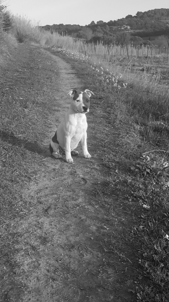 | Dire merci | De mon coté, Moogli a fini sa periode "neuneu". Il s'est émancipé grace a son pote staff qui lui a montré pleins de choses nouvelles. C'est toujours le chien parfait. Il ne fugue pas, ne râle pas, ne dort pas sur les canapés, ne vole pas le repas qui est a sa hauteur...Enfin, du pur bonheur! Il a encore grandi, 79cm au garrot et grossi, 48kg..Le nounours! En ce moment ma fille lui apprend des tours comme la pirouette au galop, le cabré, aboyer a la demande...Et aussi coucher, debout, pas bouger comme tout chien qui se réspecte! |