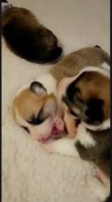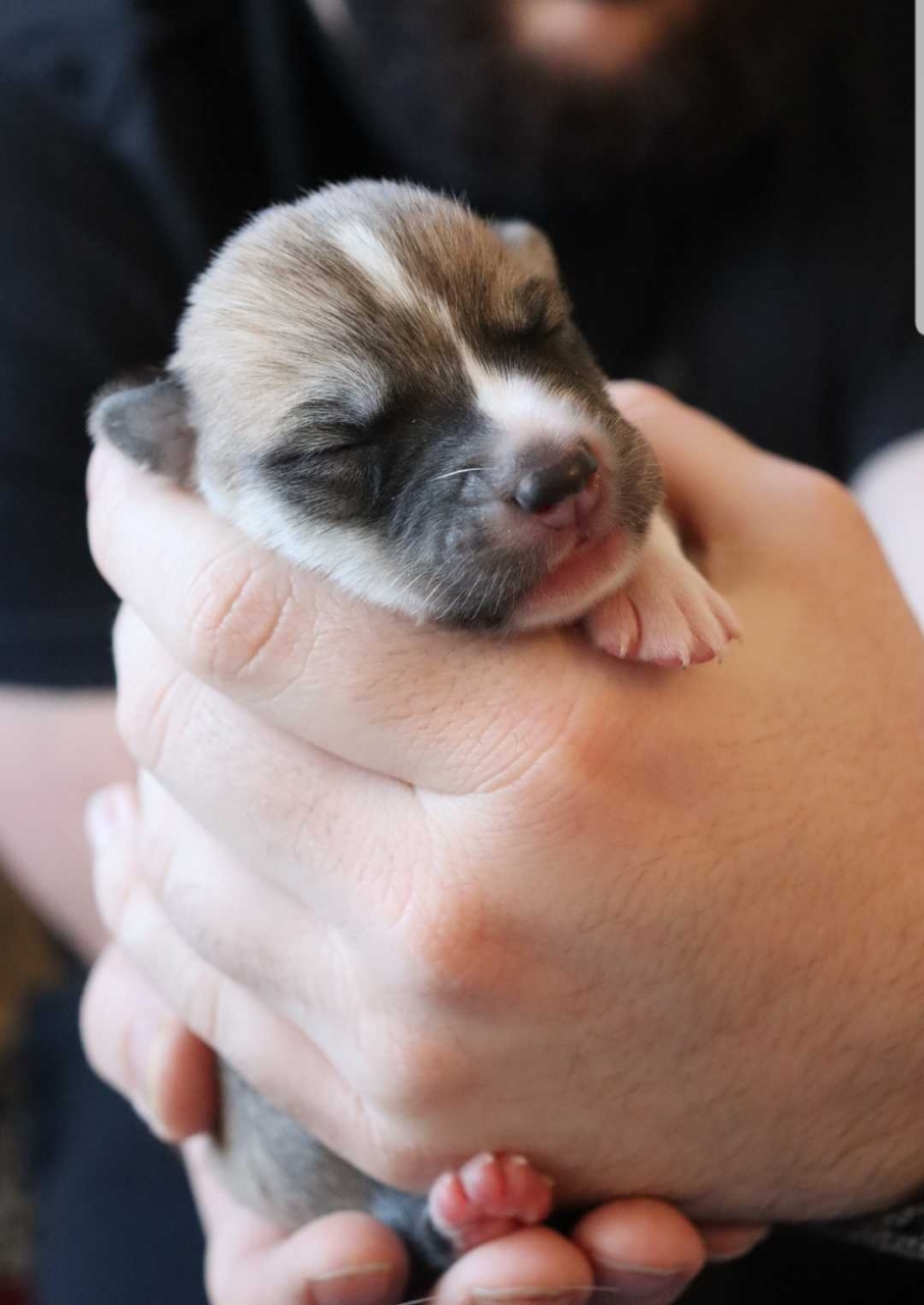 | Dire merci | "les propriétaires des deux chiens ne pensaient pas que 'techniquement' ça pouvait arriver" Du coup si papa corgi, la maman serait plutôt grande race, non? C'est super difficile à dire là mais je tente... race nordique? Type husky, malamute? Le marquage blanc et masque gris m'y font penser. |